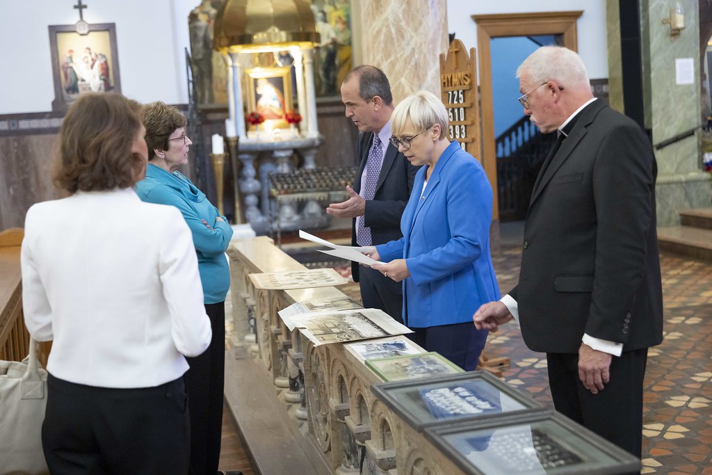 V nadaljevanju je obiskala obe slovenski župniji v Clevelandu, cerkev sv. Vida in cerkev Marije Vnebovzete, kjer imajo redne tedenske slovenske maše. Seznanila se je z dejavnostmi, ki jih prirejajo skozi vse leto, in z učenjem slovenskega jezika, ki ga izvajata slovenski šoli v obeh župnijah.