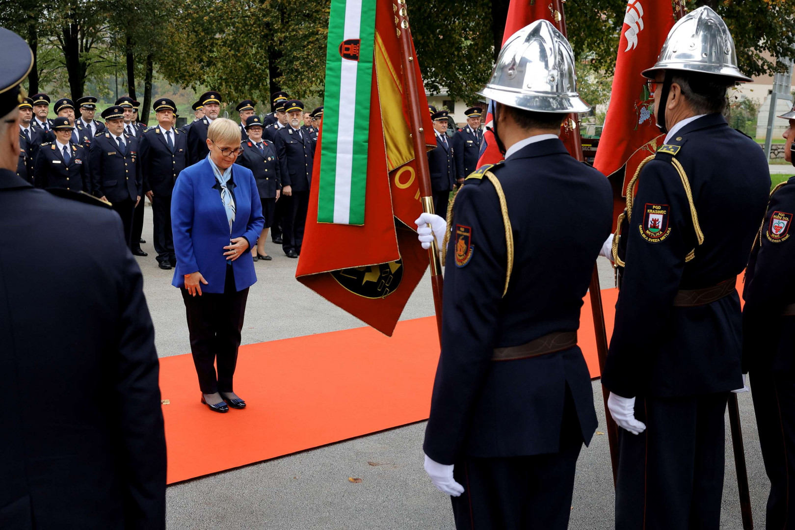 Predsednica je ob tej priložnosti v krajšem nagovoru gasilcem izpostavila, da poosebljajo neprecenljive vrednote za slovensko družbo, kot so humanitarnost, solidarnost, pogum, tovarištvo. ki jih moramo skrbno negovati. "Vaše delo, izkušnje, znanje, izobraževanje in medgeneracijsko sodelovanje so zagotovilo, da se bodo vrednote nesebične pomoči sočloveku ter požrtvovalnosti prenašale na naslednje generacije, na mlade. Večkrat sem že omenila kako pomembno je, da na različnih družbenih področjih sodelujemo z mladimi, jih poslušamo in tudi slišimo. Menim, da so mladinski programi gasilske organizacije resnično lahko vzor vsem ostalim. Zato me posebej veseli, da sem lahko prispevala k uvodni predstavitvi slovenske mladinske ekipe na gasilski olimpijadi," je dejala in se jim zahvalila za vsa odrekanja, srčnost in izjemnost, da ljudem pomagajo, ko jim je najtežje in na tak način ljudi združujejo in jim dajejo upanje. V zahvalo in znak spoštovanja jim je predsednica podarila zlato podkev, simbol sreče.