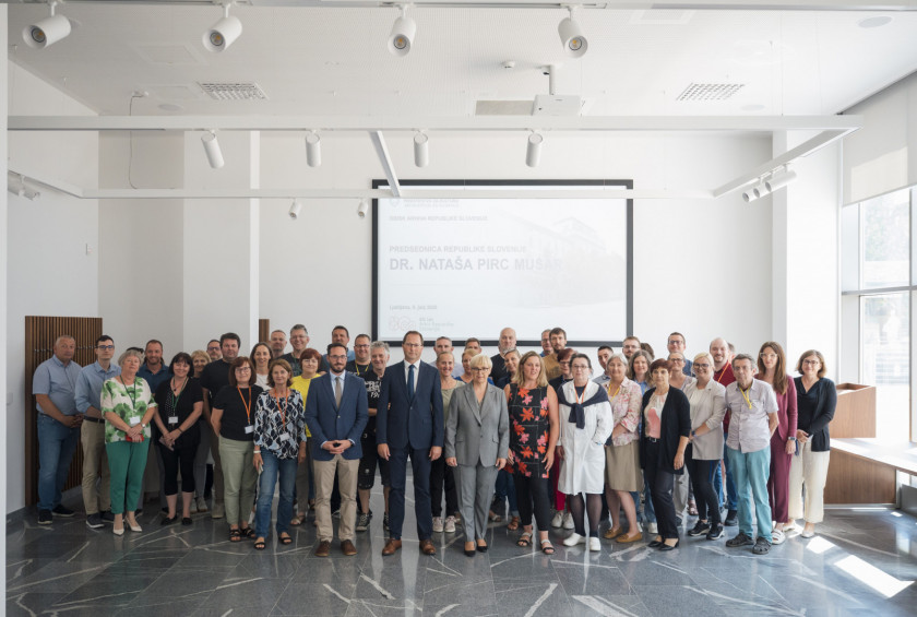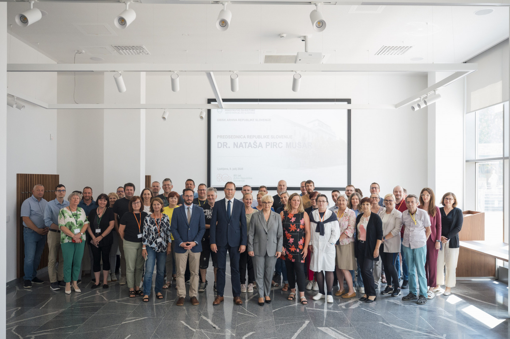 Ob obisku so predsednico seznanili z delovanjem ustanove, ji predstavili ključne projekte ter jo popeljali po novih prostorih. Ogledala si je tudi nekaj najdragocenejših primerkov arhivskega gradiva, ki predstavlja temelj našega zgodovinskega spomina in kulturne identitete.