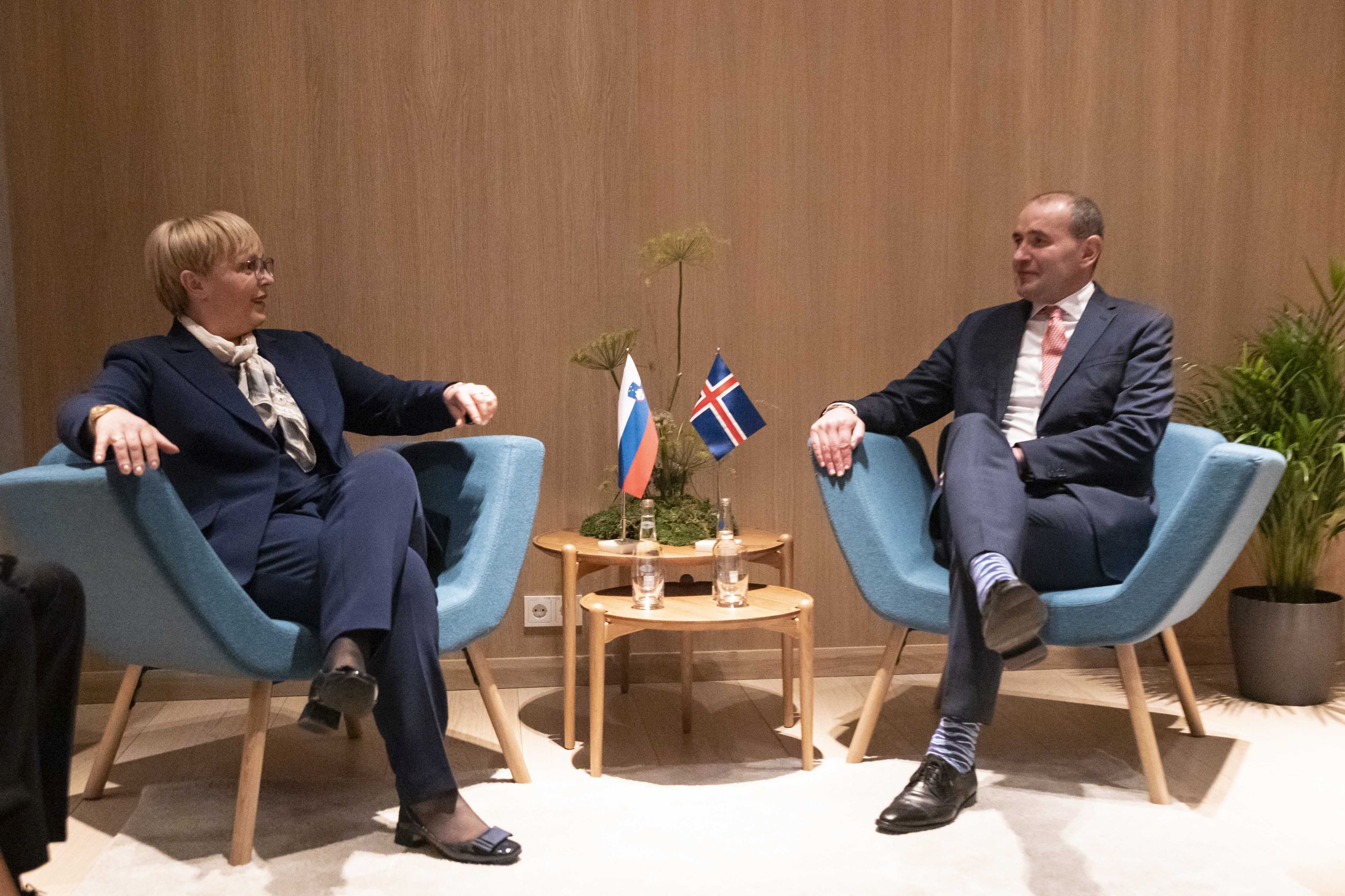 Predsednica Pirc Musar se je sestala tudi s predsednikom Islandije Guðnijem Thorlaciusom Jóhannessonom. Predsednica in predsednik sta v pogovoru potrdila prijateljske odnose med Slovenijo in Islandijo ter izrazila prepričanje, da bosta državi še naprej razvijali sodelovanje na različnih področjih skupnega interesa. Soglašala sta, da je za geografsko majhne države, kot sta Slovenija in Islandija, zelo pomembno iskanje podobno mislečih partnerjev. Ob tem sta potrdila, da državi ne glede na njuno velikost pomembno prispevata k mednarodni skupnosti. Delita tudi podobna stališča in skupne interese v večstranskih okvirih, predsednica Pirc Musar je ob tem izrazila zadovoljstvo, da je Islandija zaveznica Slovenije v številnih projektih skupnega interesa v okviru Sveta Evrope, Združenih narodov, Zveze NATO in drugih mednarodnih organizacij. Veliko pozornosti sta predsednika v pogovorih namenila tudi podnebnim spremembam – državi si namreč delita tudi dolgoletno zavezanost varstvu okolja in podnebnim ukrepom.