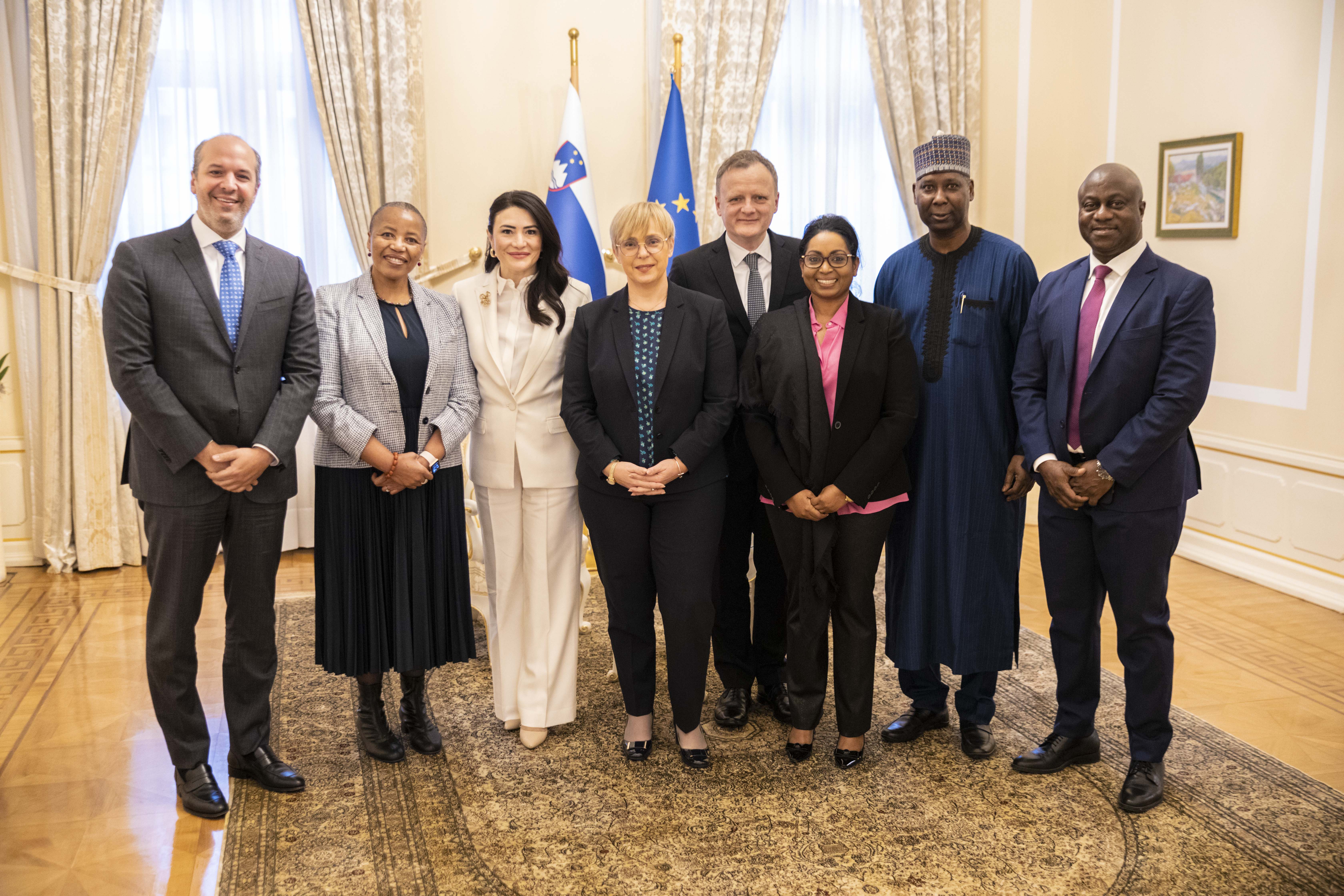 Predsednica Republike Slovenije dr. Nataša Pirc Musar je v Predsedniški palači sprejela skupino veleposlanikov afriških, srednjeameriških in karibskih držav, ki kot stalni predstavniki svojih držav delujejo pri Organizaciji združenih narodov v New Yorku.