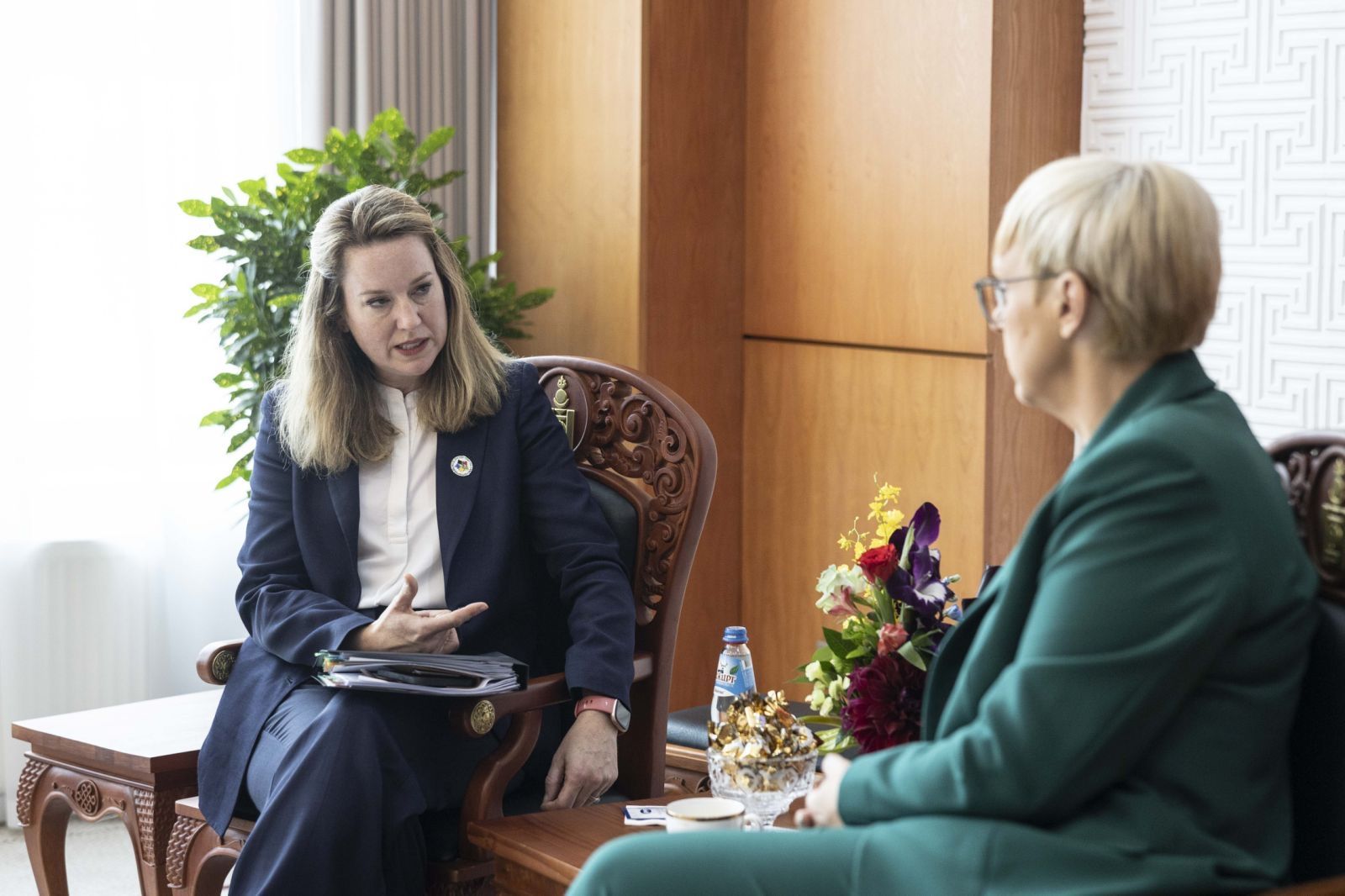 Predsednica republike Nataša Pirc Musar se je ob robu Ženskega foruma v Ulan Batorju o trendih in izzivih upravljanja migracij pogovarjala z Amy Pope, generalno direktorico Mednarodne organizacije za migracije (IOM).