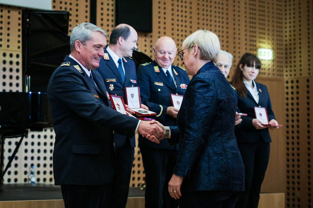 Predsednica je prejela posebno zahvalo Gasilske zveze Slovenije za njen odnos do dela prostovoljnih gasilcev. Foto: Daniel Novakovič/STA