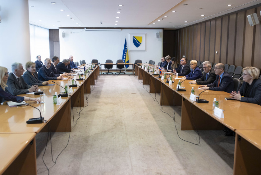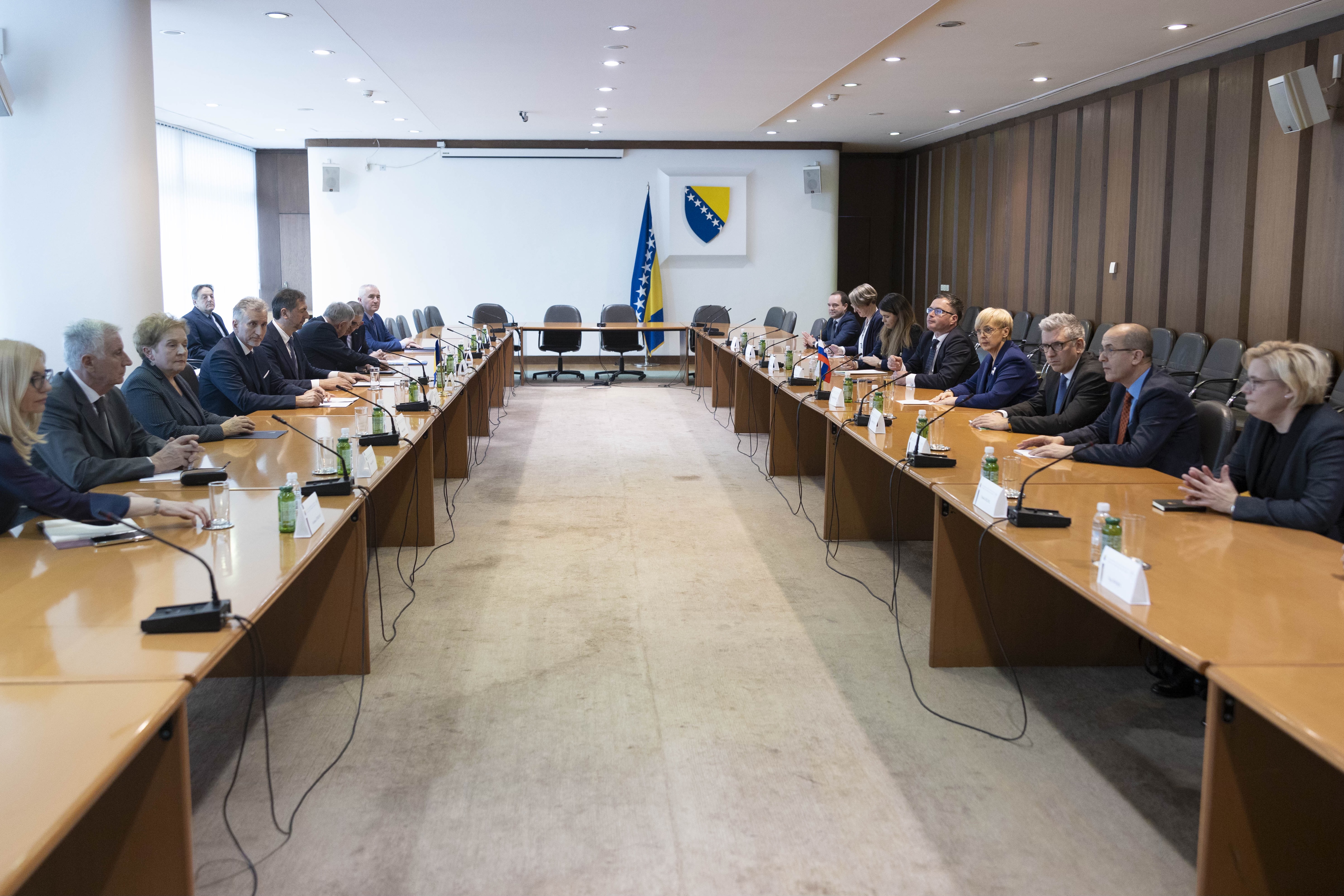 Na srečanju s predsedujočo Svetu ministrov Bosne in Hercegovine Borjano Krišto ter Kemalom Ademovićem, predsedujočim Predstavniškega doma Parlamentarne skupščine BiH in Marinkom Čavaro, predsedujočim Doma narodov Parlamentarne skupščine BiH, je slovenska predsednica ponovno z zadovoljstvom izpostavila, da so odnosi med državama zelo dobri in tradicionalno prijateljski. BiH je pomembna gospodarska partnerica Slovenije in tudi druga največja prejemnica slovenske razvojne pomoči.