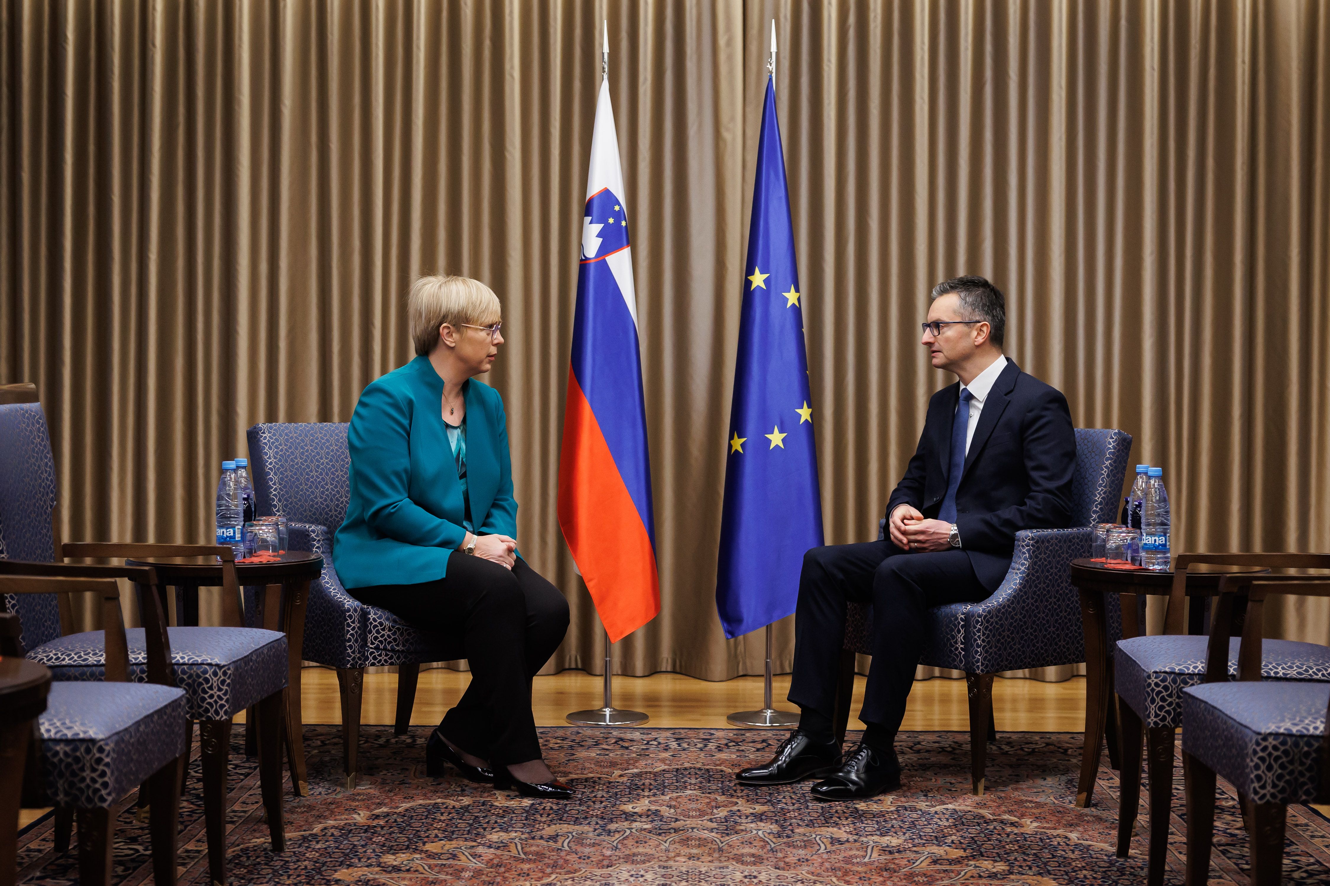 Predsednica republike je v pogovorih poudarila, da je treba pozornost poleg vojaške obrambe nameniti tudi krepitvi odpornosti družbe in sposobnosti Slovenije za odzivanje na krize. Ob tem se je predsednica dotaknila širšega varnostnega konteksta in poudarila, da živimo v času, ko smo soočeni smo z nepredvidljivim varnostnim okoljem, hibridnimi grožnjami, vojno na evropskih tleh in s prebojnimi tehnologijami. Poudarila je, da je varnost predpogoj za delovanje celotne družbe in vseh ključnih podsistemov, obrambni resor pa ima v teh okoliščinah pomembno vlogo. Reševanje sodobnih varnostnih izzivov po mnenju predsednice terja vse močnejše povezovanje na relaciji varnost – obramba – gospodarstvo – šolstvo – znanost – inovacije in razvoj.