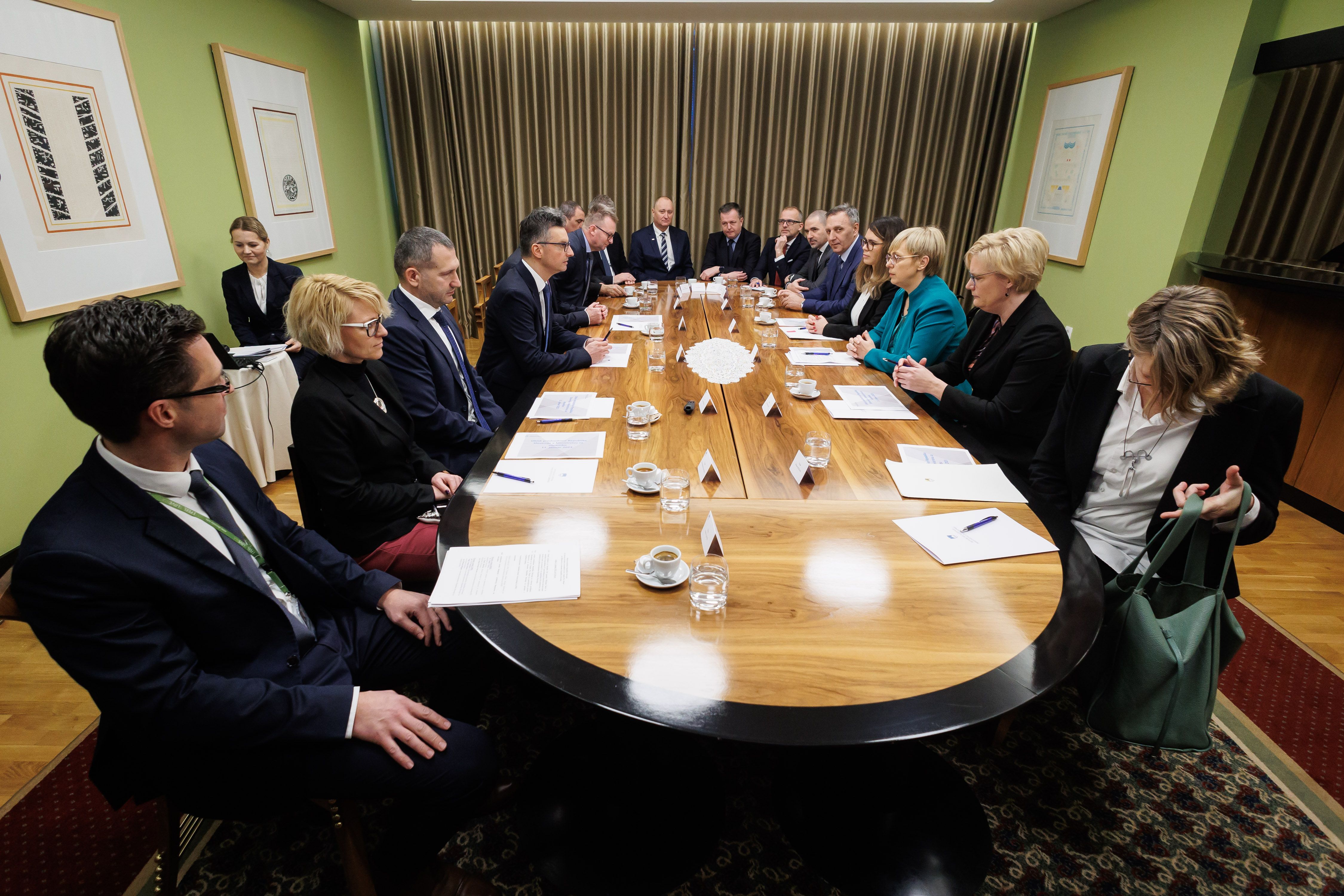 Predsednica republike in vrhovna poveljnica obrambnih sil se je najprej srečala z ministrom za obrambo Marjanom Šarcem.