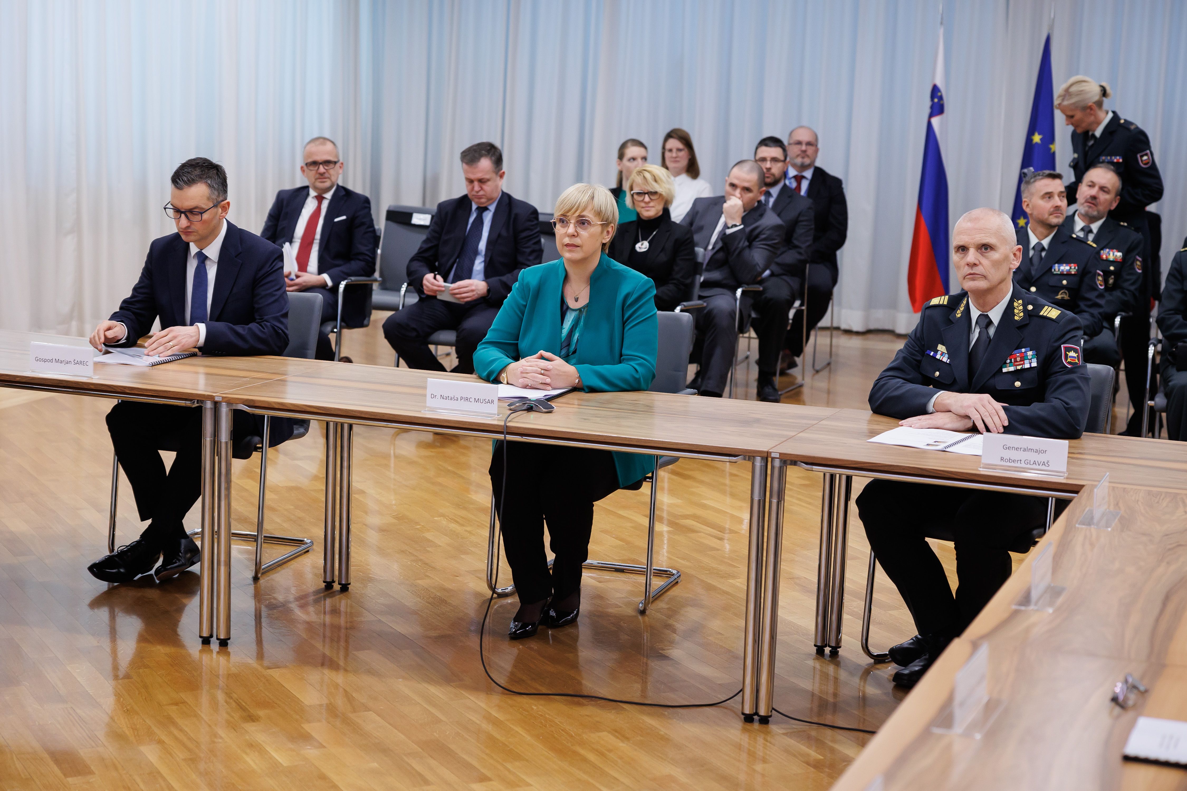 Predsednica je dodala, da sta se z ministrom Šarcem pogovarjala o razširitvi rednega letnega poročanja – da bi se torej poleg letnega poročanja o pripravljenosti Slovenske vojske predsednici republike poročalo tudi o drugih področjih, pomembnih za obrambo, kot sta pripravljenost in odpornost družbe ter sposobnost odzivanja Slovenije na krize.