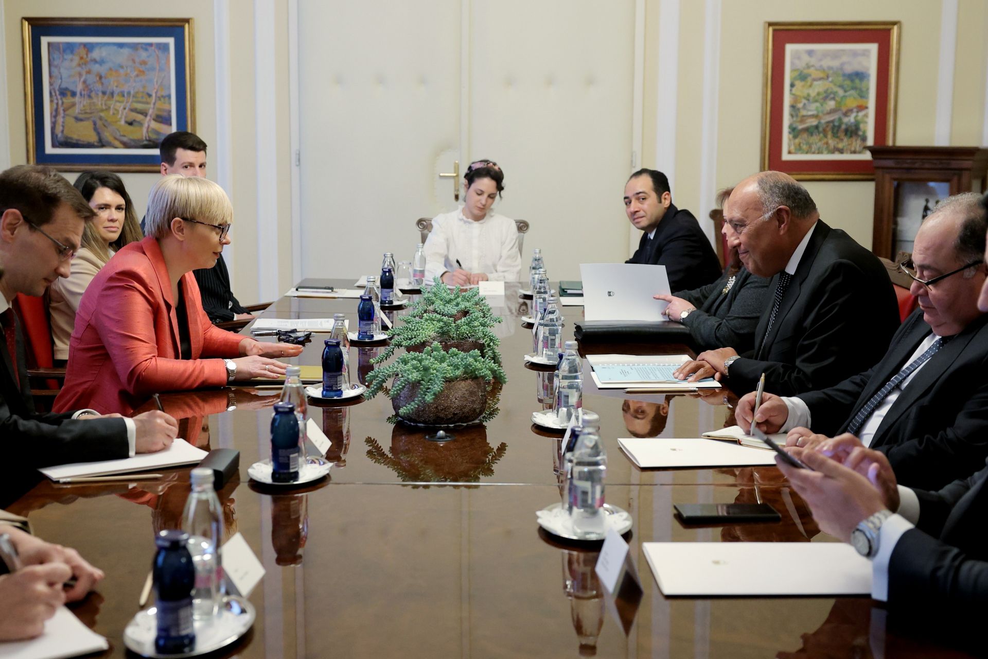 Predsednica republike in minister Shoukry sta se pogovarjala o razmerah na Bližnjem vzhodu. Predsednica se je ministru zahvalila za pomembno vlogo, ki jo ima Egipt v prizadevanjih za mir v vojni v Gazi, še posebej pri zagotavljanju humanitarne pomoči.