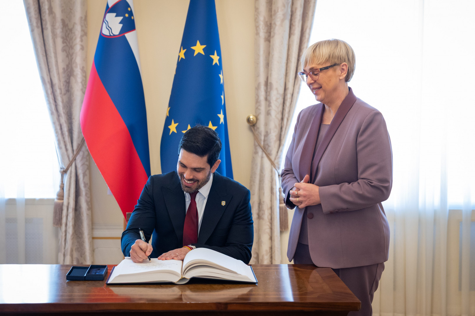 Po predaji poverilnega pisma so se veleposlaniki vpisali v knjigo gostov predsednice Republike Slovenije, nato pa so s predsednico izmenjali stališča glede odnosov med Slovenijo in državami, ki jih predstavljajo. Del pogovora so sogovorniki namenili tudi multilateralnemu sodelovanju in aktualnim mednarodnim razmeram.