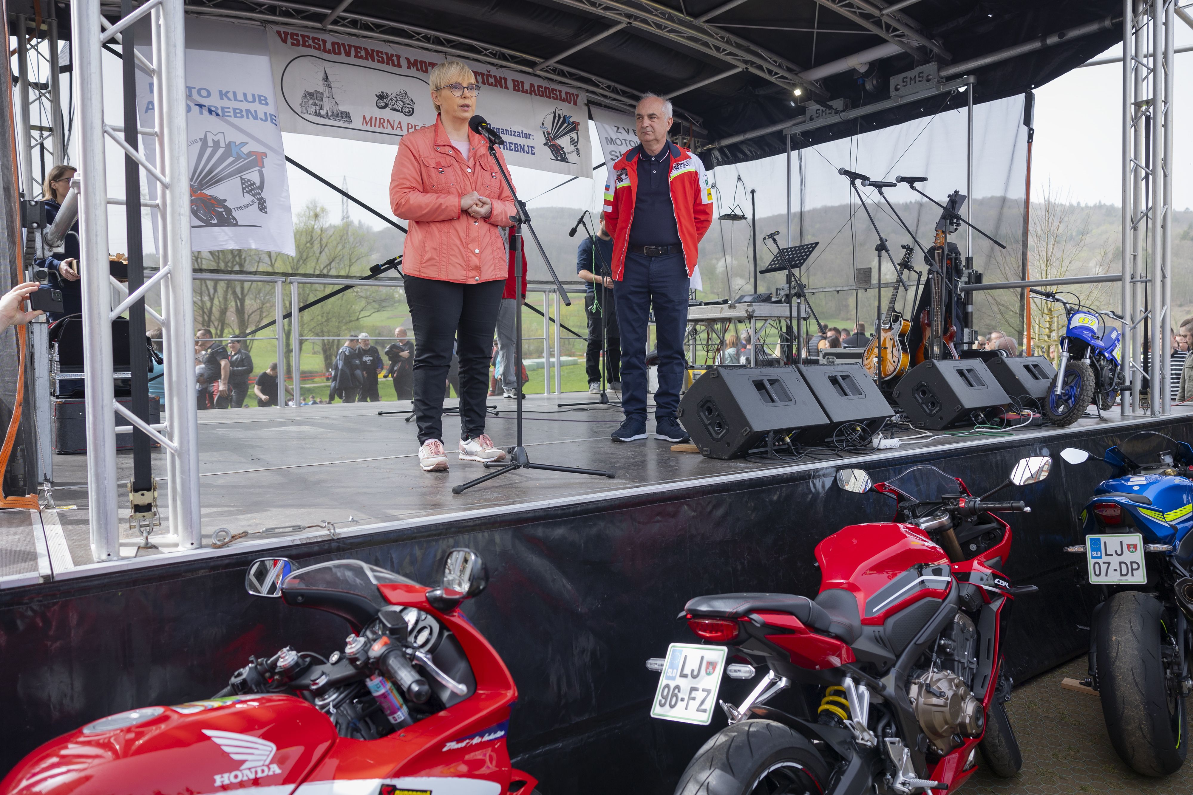 Predsednica Republike Slovenije Nataša Pirc Musar se je na velikonočni ponedeljek udeležila tradicionalnega vseslovenskega blagoslova motorjev in motoristov v Mirni Peči.