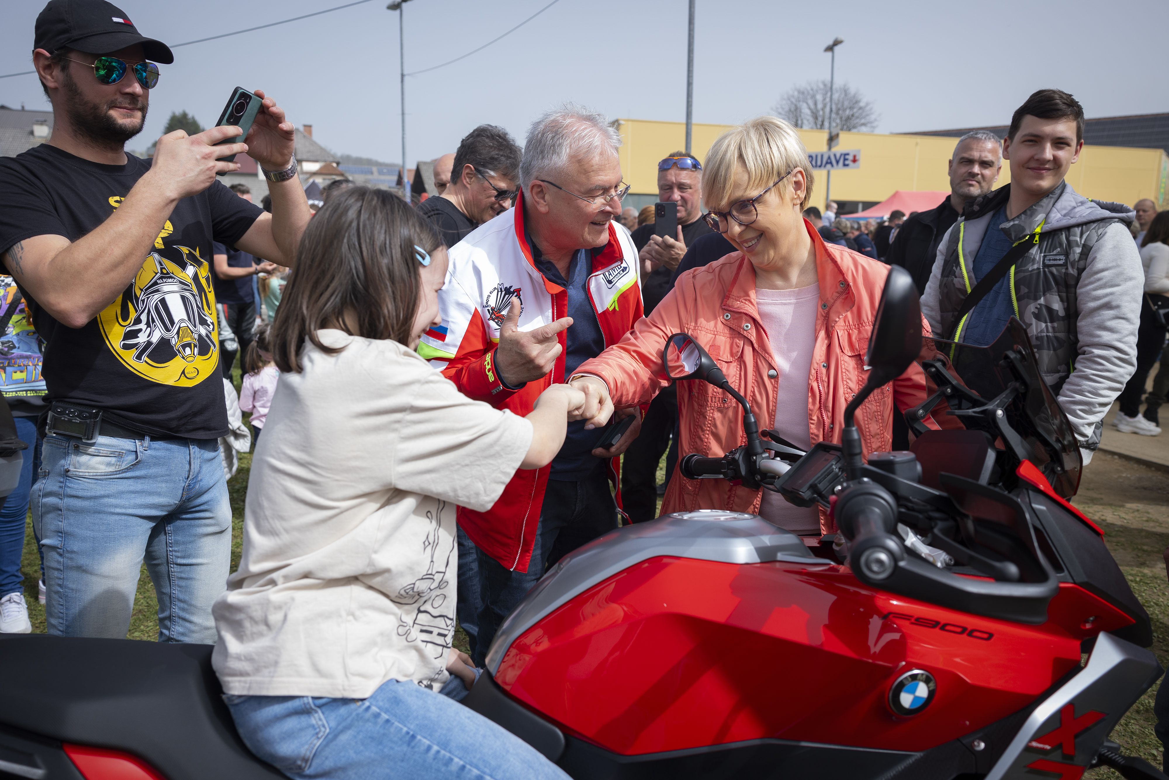 "Motor nam je vsem skupaj v užitek, veselje, svoboda, ne bom rekla z vetrom v laseh, ker pametno glavo vedno varuje čelada, gotovo pa z veliko zadovoljstva in užitkov. Naj vas spremlja sreča na vsaki poti, naj bodo vaše vožnje polne radosti in raziskovanja," je motoristkam in motoristom še zaželela predsednica Pirc Musar.