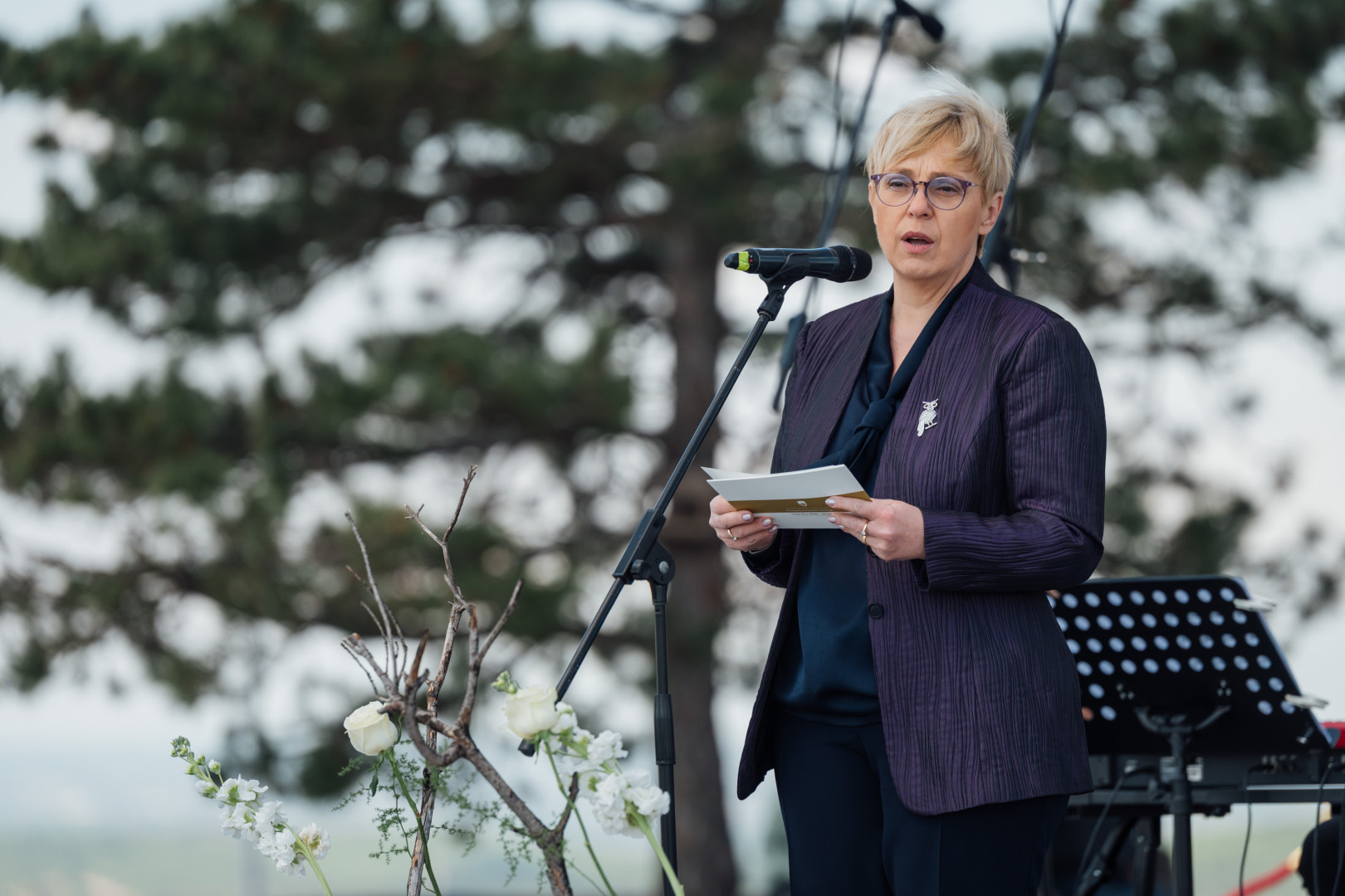 Predsednica Republike Slovenije Nataša Pirc Musar se je udeležila odprtja mednarodne krožne poti Carsus Trail – Zeleno srce Krasa pri Pomniku miru na Cerju.