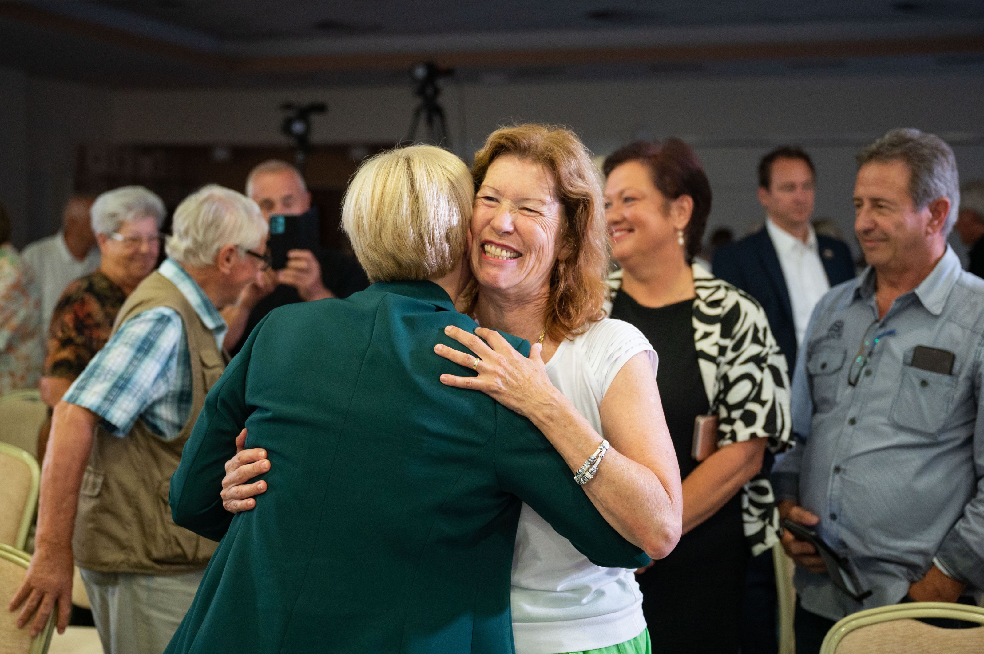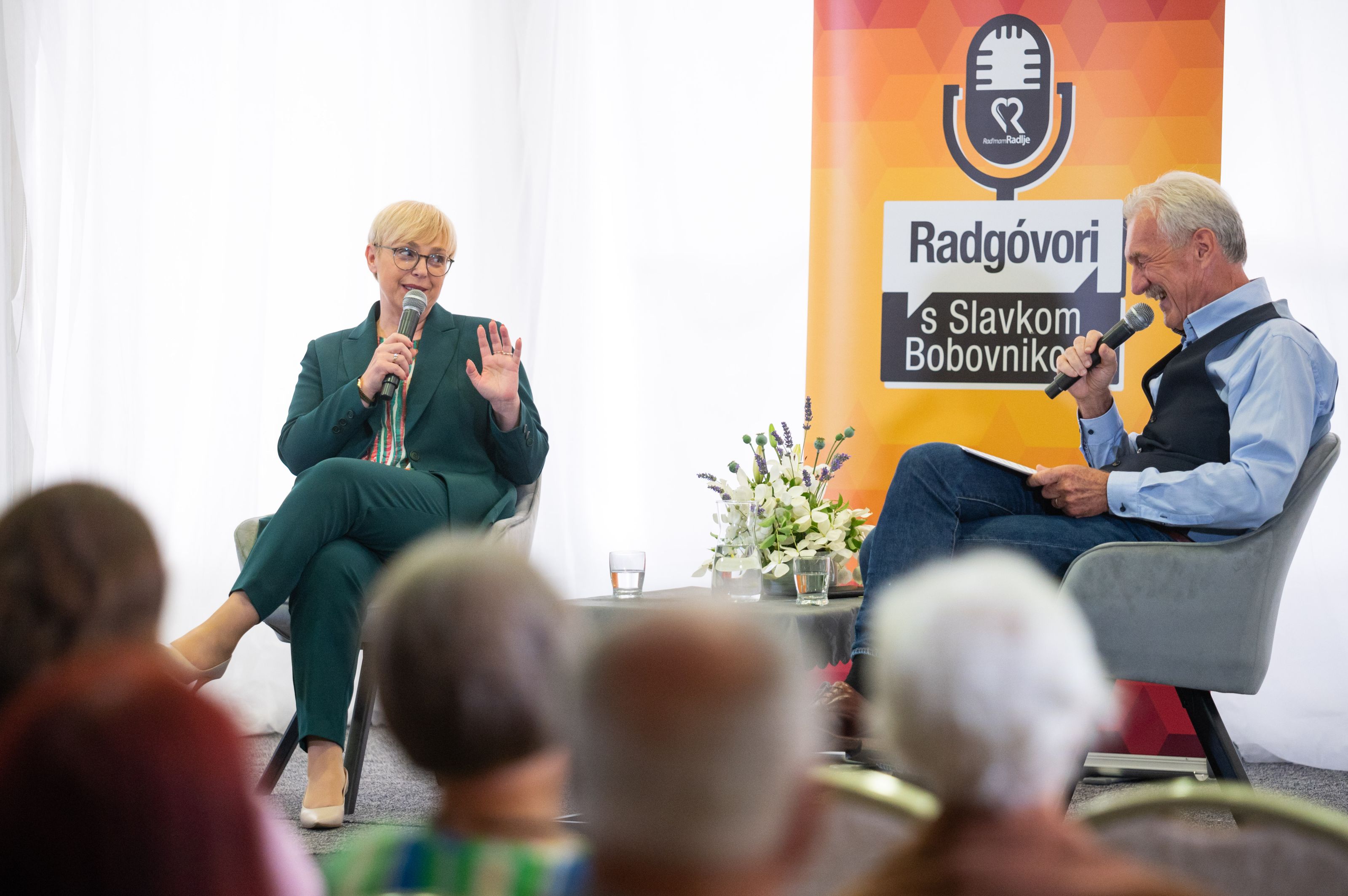 V večernih urah se je predsednica republike v Radljah ob Dravi udeležila tudi pogovornega večera z nekdanjim televizijskim voditeljem in novinarjem Slavkom Bobovnikom in ob tej priložnosti odgovarjala tudi na vprašanja občanov.