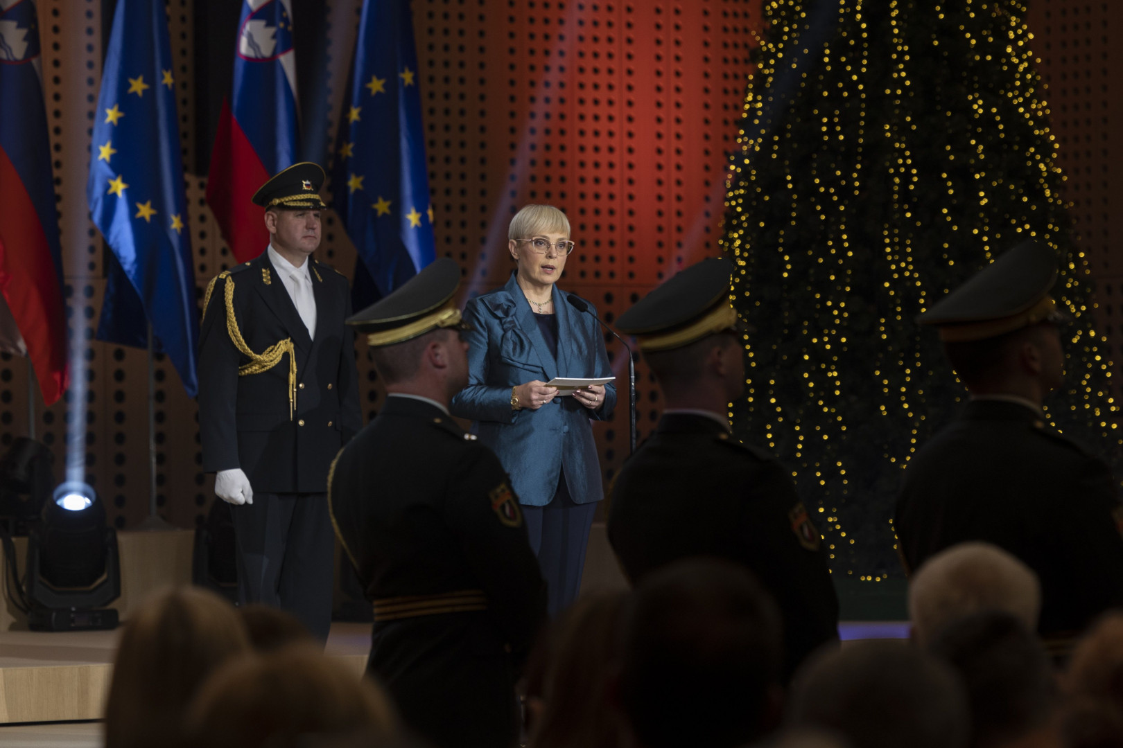 »Naj današnja odlikovanja zato ne bodo le zahvala, temveč tudi navdih, da skupaj gradimo Slovenijo in svet, kjer se človek ne izgubi v množici, temveč najde svoje mesto v skupnosti, zaupanju, poštenosti, medsebojni pomoči, pripadnosti in zmernosti«, je zaključila.