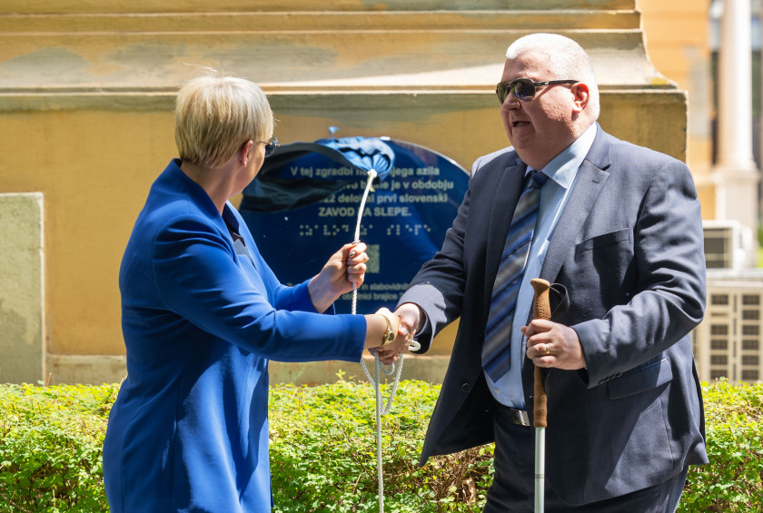 Predsednica Republike Slovenije Nataša Pirc Musar je danes skupaj s predsednikom Zveze društev slepih in slabovidnih Slovenije Matejem Žnuderlom odkrila spominsko ploščo na prvem sedežu Zavoda za slepe ob 200-letnici predstavitve brajice.