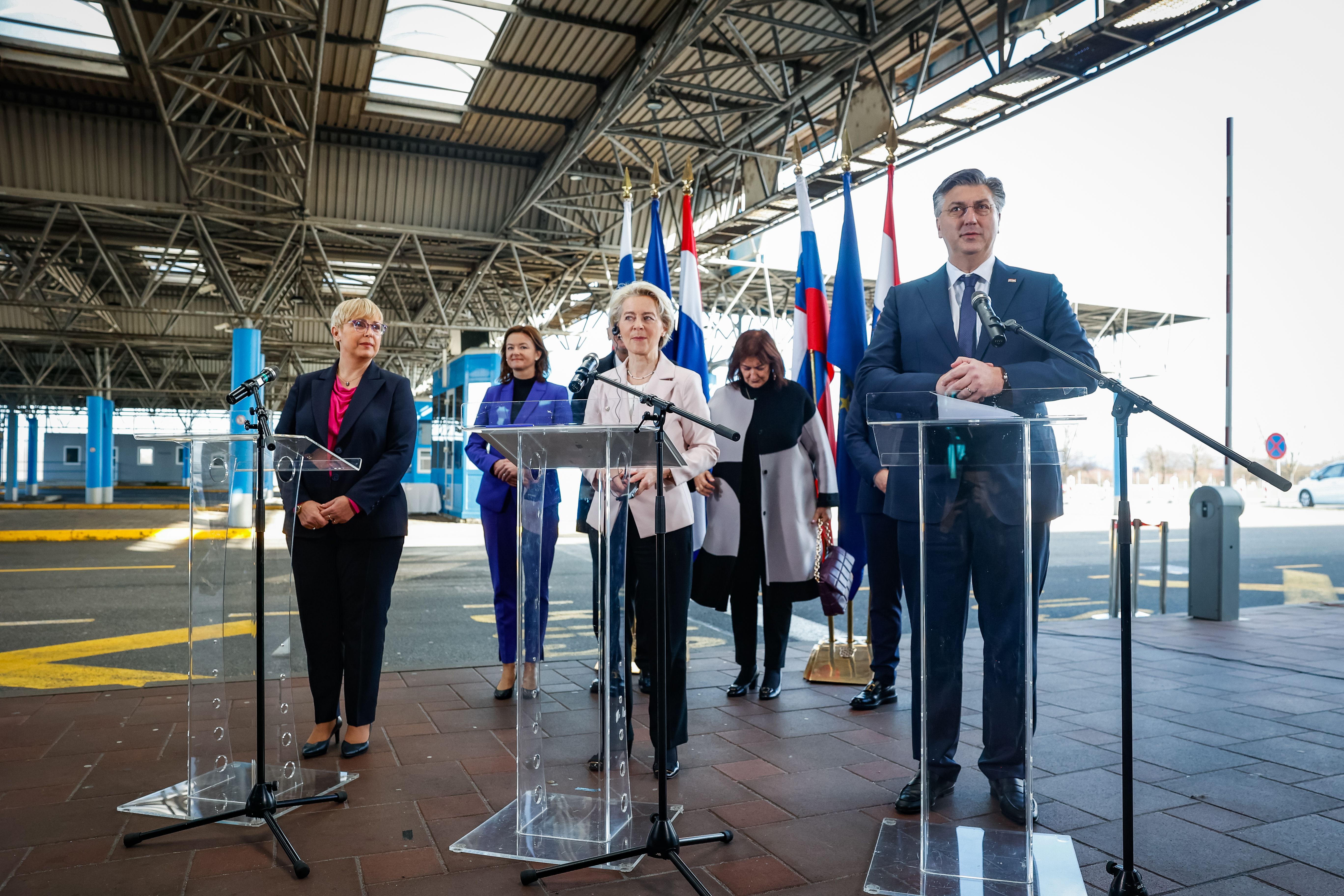 Predsednica Republike Slovenije Nataša Pirc Musar se je danes na mejnem prehodu Obrežje skupaj s predsednico Evropske komisije Ursulo von der Leyen in predsednikom Vlade Republike Hrvaške Andrejem Plenkovićem udeležila slovesnosti ob hrvaškem vstopu v schengensko in evrsko območje.