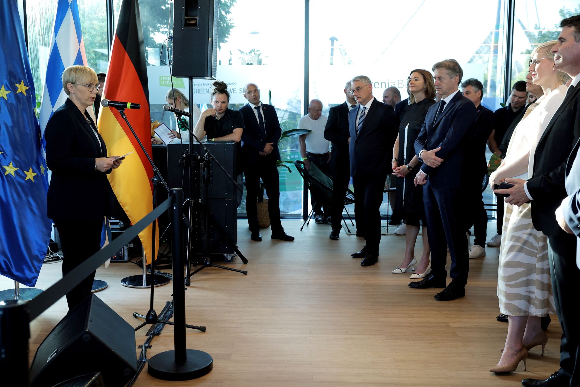 Predsednica je izpostavila tudi pomembno vlogo slovenskih izseljencev. "Slovenke in Slovenci v različnih državah sveta ste naši ambasadorji, nosilci naše kulture, jezika in vrednot. Vaša predanost domovini ter ponos sta izjemno pomembna, saj ste most med Slovenijo ter preostalim svetom, v vašem primeru Nemčijo. Vaša prisotnost danes še dodatno krepi našo povezanost in solidarnost ter kaže, kako močno lahko skupnost poveže ljudi, tudi ko smo fizično ločeni od domače grude," je izpostavila.
