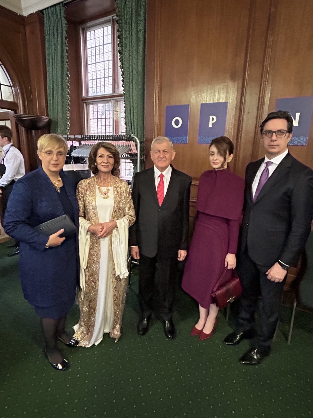 Predsednica Nataša Pirc Musar v družbi iraškega predsednika Abdula Latifa Rashida in predsednika Severne Makedonije Steva Pendarovskega s soprogama.