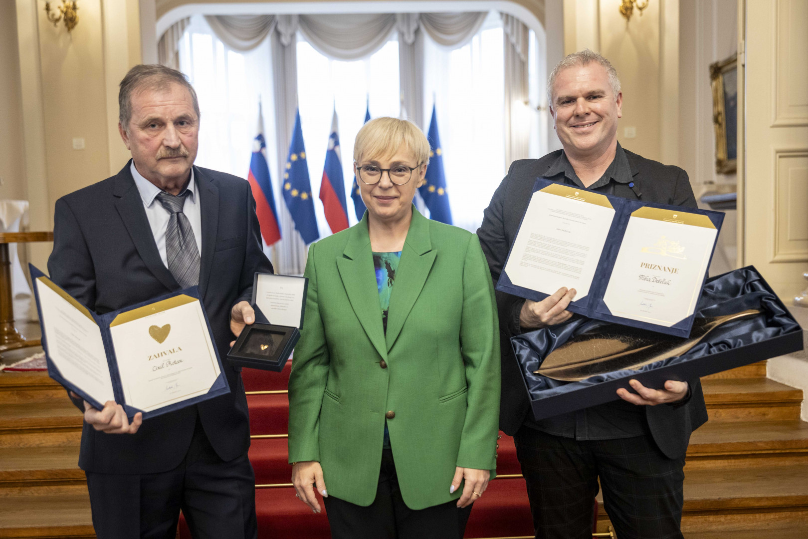 Predsednica republike v znak hvaležnosti in vir navdiha podelila priznanji Mihi Deželaku in Cirilu Rotarju