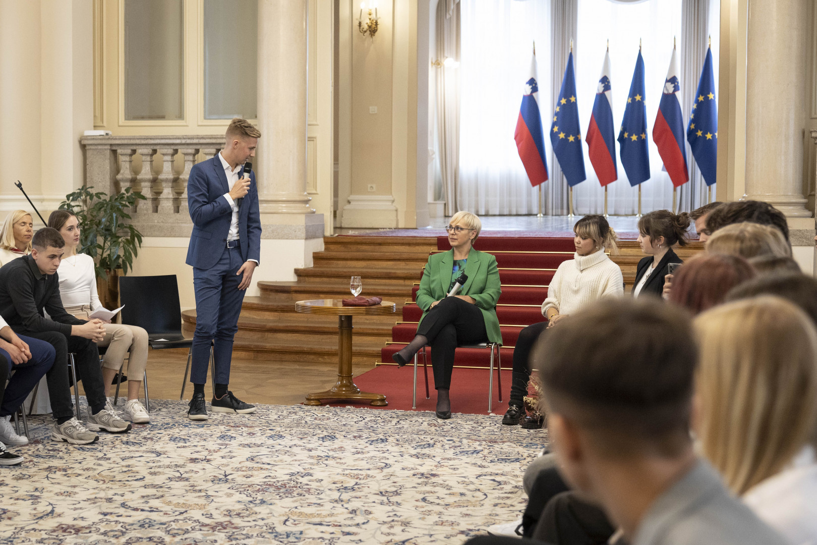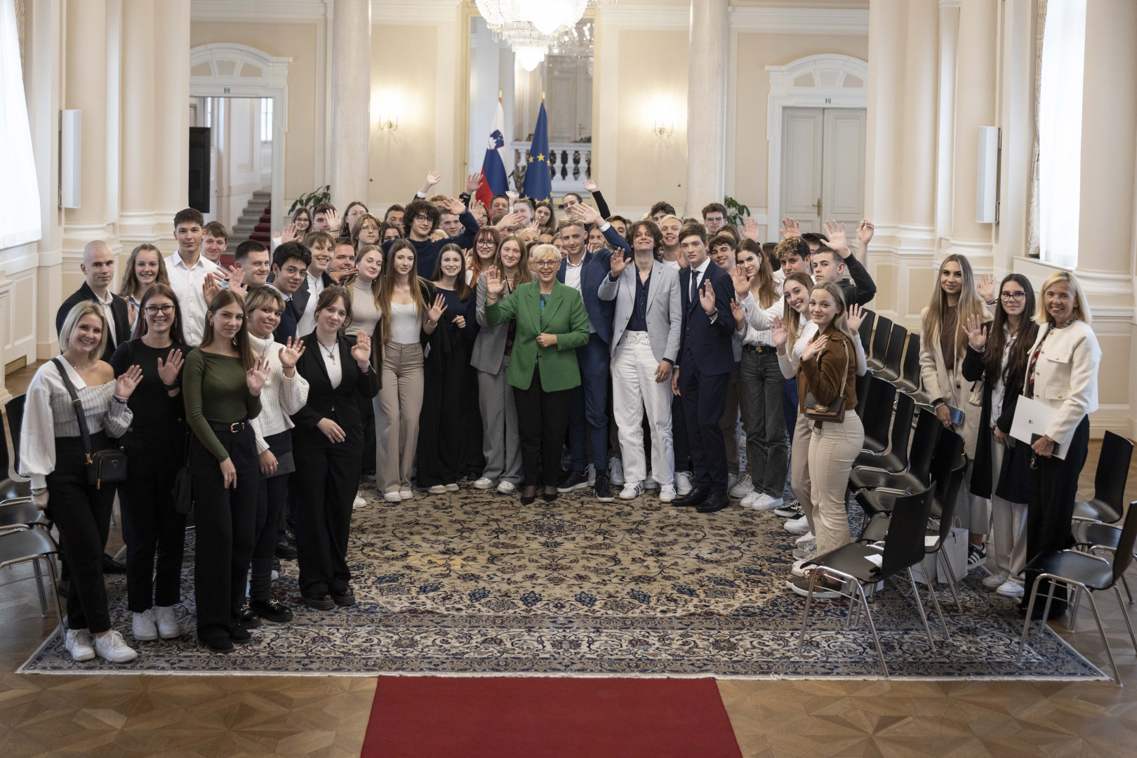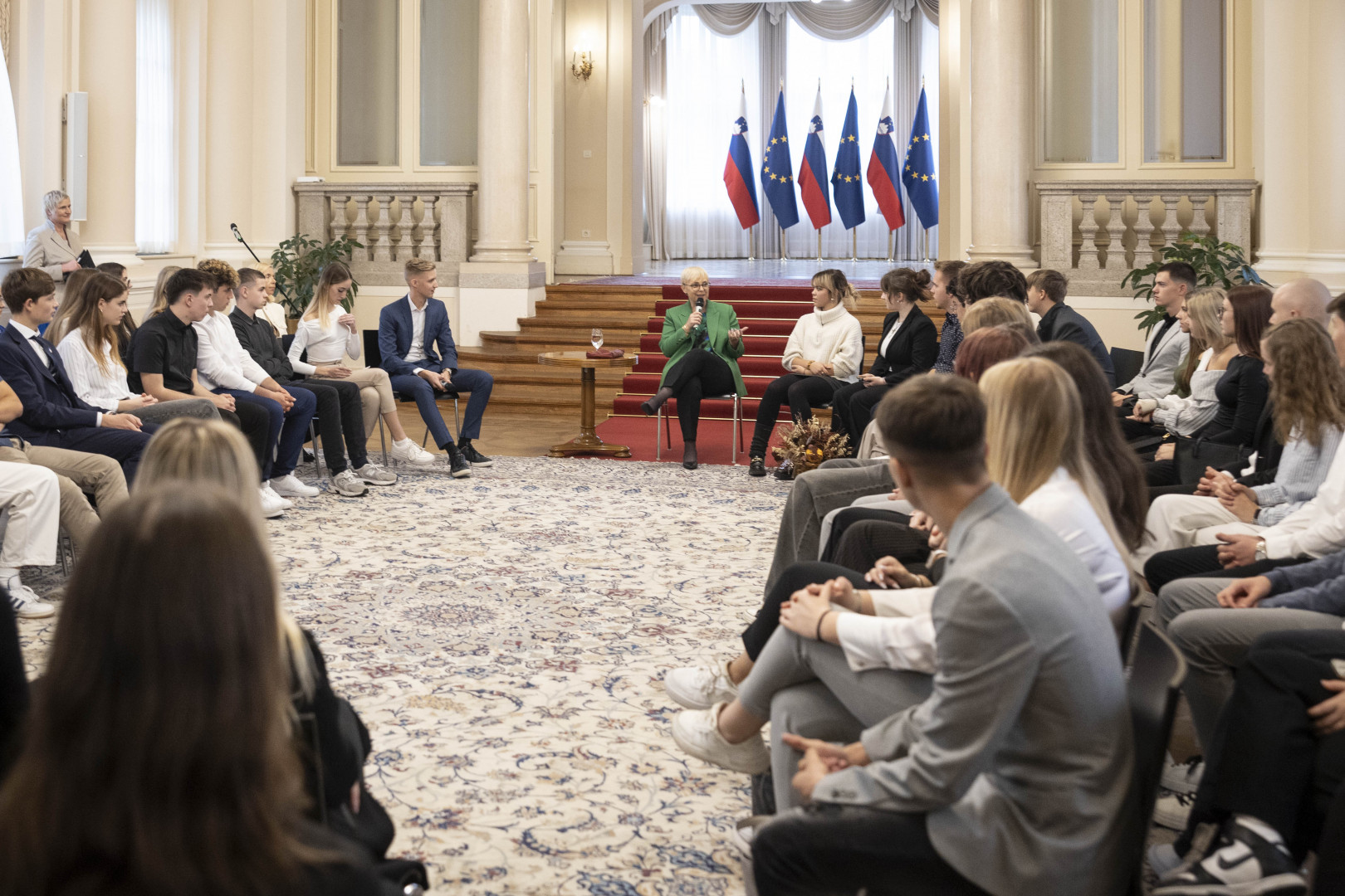 Podelitev priznanj predsednice so spremljali tudi dijaki Dijaške skupnosti Celje, s katerimi je predsednica nato opravila pogovor o pomenu posameznikovih tovrstnih prizadevanj za boljšo družbo, državljanski vzgoji in aktivnem državljanstvu.