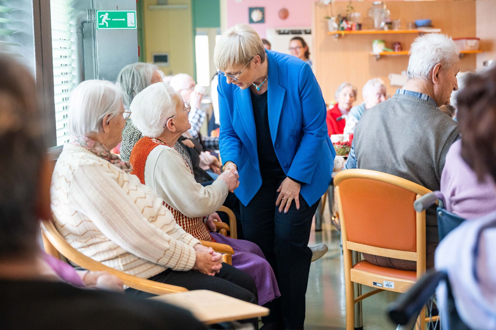 Predsednica republike je stanovalkam in stanovalcem ter zaposlenim zaželela vse dobro v letu 2024 in jim podarila nekaj domačih dobrot. V prijetnem druženju ob čaju in kakavu sem se z njimi pogovarjala o različnih temah, spominih, njihovih razmislekih in željah.
