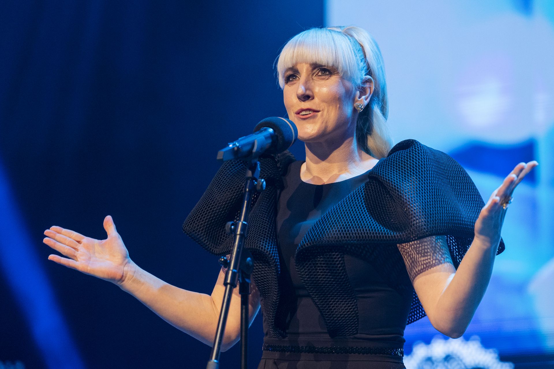 Skupaj s soprogom Alešem Musarjem se je predsednica republike v nadaljevanju udeležila tudi osrednje slovesnosti v Linhartovi dvorani Cankarjevega doma, na kateri so razglasili prejemnico naziva Slovenka leta 2023. Prejela ga je Ana Petrič, direktorica DEOS Centra starejših Notranje Gorice.