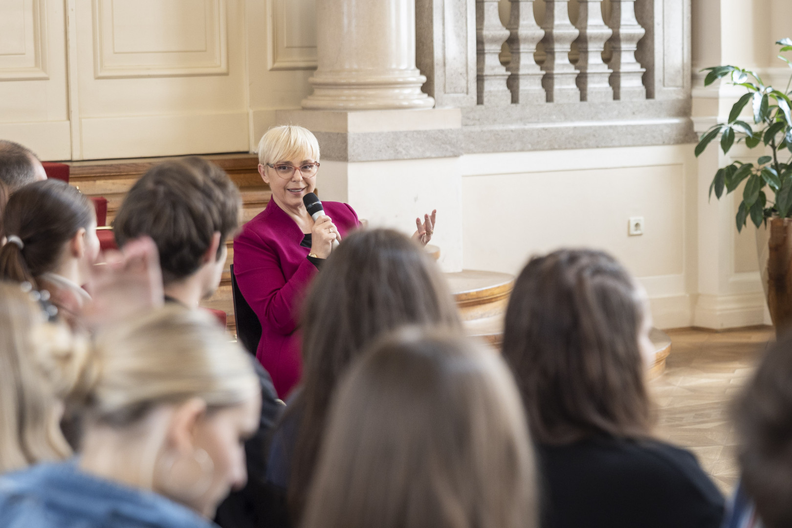 Predsednica republike se je dijakom zahvalila za njihov obisk. Kot jim je povedala, se pogosto pogovarja z mladimi, saj jo zanimajo njihovi pogledi, kaj si želijo za prihodnost Slovenije.
