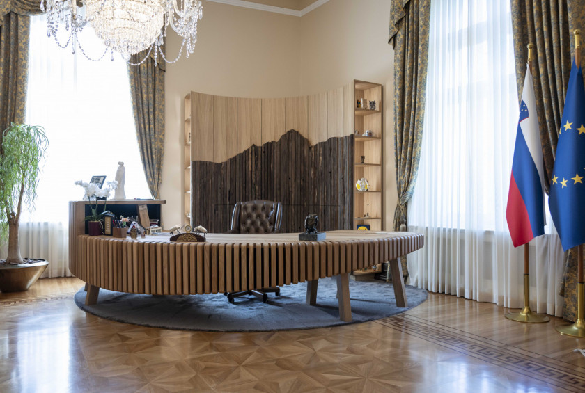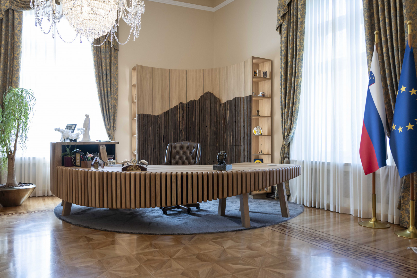 Največ pozornosti je pritegnila predsedničina pisarna, kjer je obiskovalce sprejeli predsednica osebno in odgovarjala na njihova številna vprašanja. Prvič so si lahko ogledali prenovljen prostor z novo mizo, izdelano iz slovenskega lesa, ki jo je predsednica prejela v začasno rabo. Slednja s svojo simboliko in oblikovanjem pripoveduje edinstveno zgodbo o Sloveniji – o njeni naravi, tradiciji, znanju in ustvarjalnosti. Slovenija, ki se ponaša z obsežnimi gozdovi ter bogato tradicijo obdelave lesa, ima pomembno vlogo v boju proti podnebnim spremembam. Prav na to izjemno naravno in kulturno danost opozarja nova predsedničina delovna miza – umetniško in obrtniško mojstrstvo, ki izraža trajnostno vizijo ter spoštovanje do narave in domače dediščine.