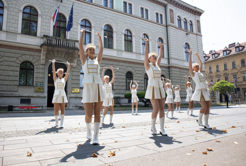 Ob zaključku dneva odprtih vrat so predsednico s plesno koreografijo presenetile tudi mažoretke iz Nacionalnega mažoretnega ansambla (NMA).