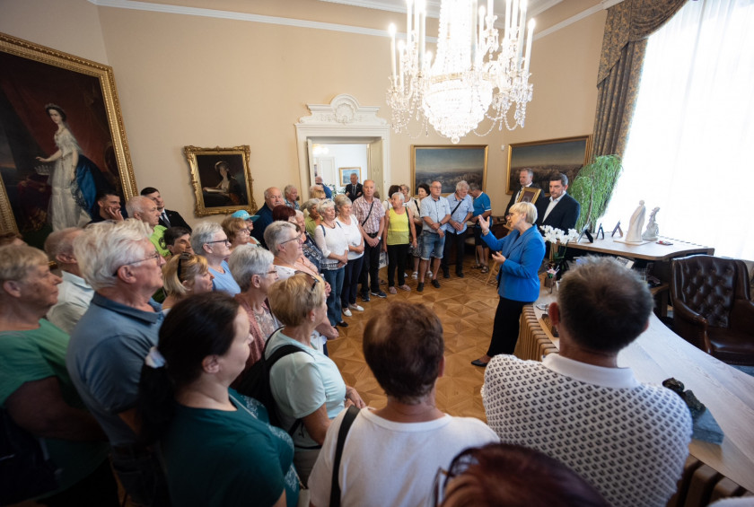 Obiskovalci so si v več vodenih skupinah pod strokovnim vodstvom uslužbencev Protokola Republike Slovenije ogledali delovne in protokolarne prostore Urada predsednice. Palača vedno znova navdušuje s svojo notranjostjo, saj je opremljena z umetninami iz zbirk Narodne in Moderne galerije ter predmeti iz Tehniškega, Prirodoslovnega in Računalniškega muzeja. Posebno zanimanje je vzbudil tudi hodnik z darili, kjer so razstavljena protokolarna darila, ki jih je urad prejel ob različnih priložnostih.