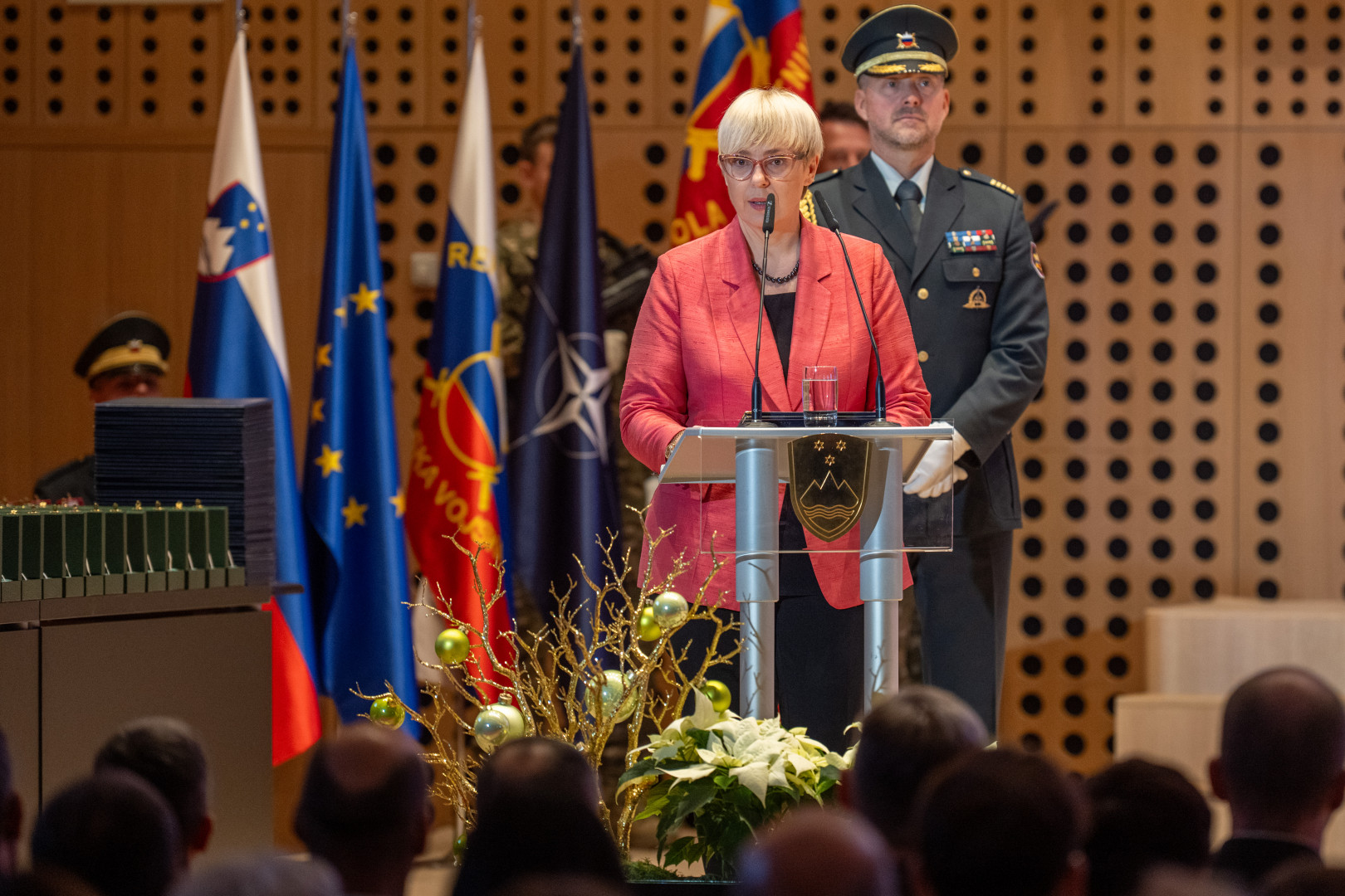 V slavnostnem nagovoru je predsednica Pirc Musar poudarila, da poročnice in poročniki prejemajo prvi častniški čin kot simbol zaupanja, predanosti, požrtvovalnosti ter dolžnosti in ljubezni do domovine: »Po skoraj enoletnem trdem delu, odrekanjih in medsebojni pomoči pri skupnem poslanstvu s pridobljenim činom potrjujete svojo zrelost, značaj in pripravljenost, da sprejmete odgovornost služenja državljankam in državljanom Republike Slovenije. S programom izobraževanja in usposabljanja ste pridobili potrebne veščine in krepili vrednote, s katerimi boste živeli in udejanjali načela vojaške discipline in etike, kot so solidarnost, spoštovanje, pogum, čast, voditeljstvo in integriteta.«