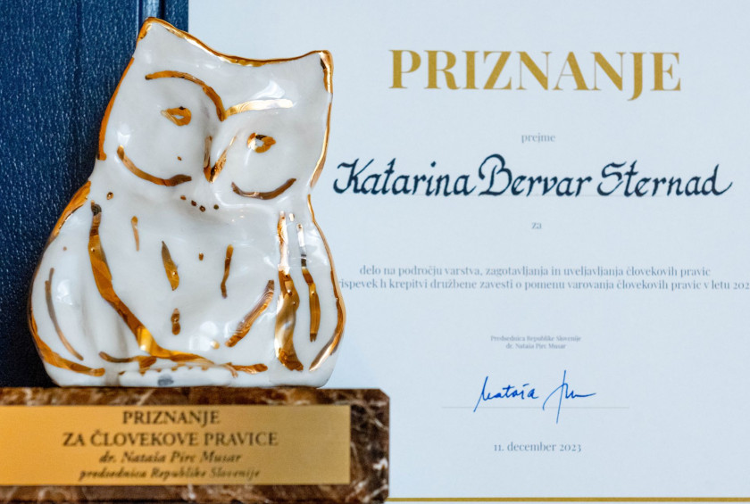 Predsednica Republike Slovenije Nataša Pirc Musar je ob dnevu človekovih pravic, ki ga po svetu obeležujemo 10. decembra, priredila slovesnost, na kateri je prvič podelila priznanje predsednice Republike Slovenije za delo na področju človekovih pravic. Prejela ga je Katarina Bervar Sternad.