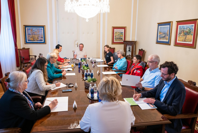 Uvodoma je izrazila veliko spoštovanje in hvaležnost za vsa dosedanja prizadevanja in pomoč ljudem. Ker je skupni cilj vseh, tako države kot humanitarnih organizacij, prisluhniti potrebam ljudi in jim čim bolj olajšati težko pot do obnove ali sanacije njihovih domov, je predsednica humanitarce povabila k izmenjavi mnenj, izkušenj in idej za usklajevanje nadaljnjih korakov, ki bodo omogočili učinkovito pomoč prizadetim prebivalcem.