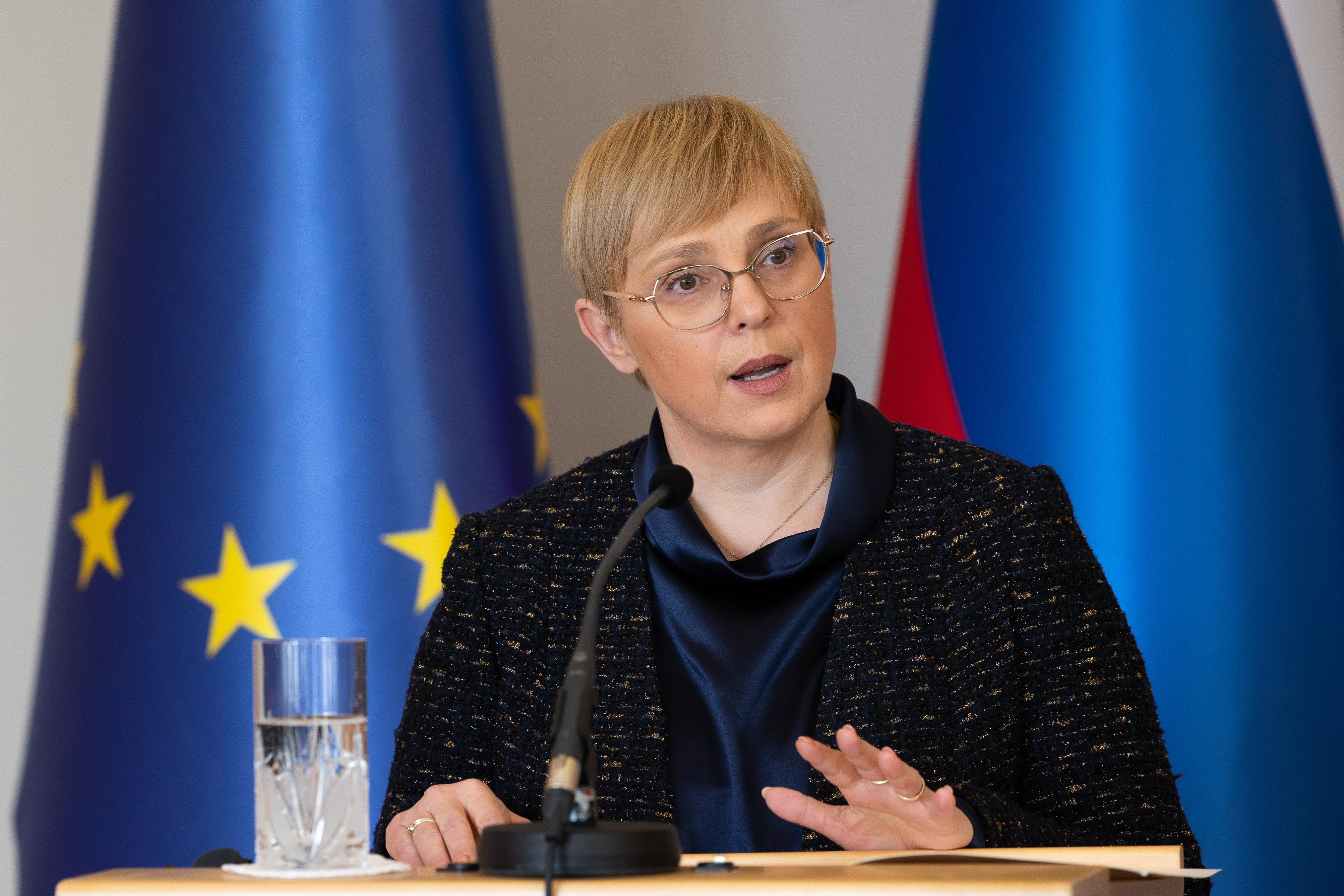 Predsednica republike na novinarski konferenci ob delovnem obisku v Zagrebu.