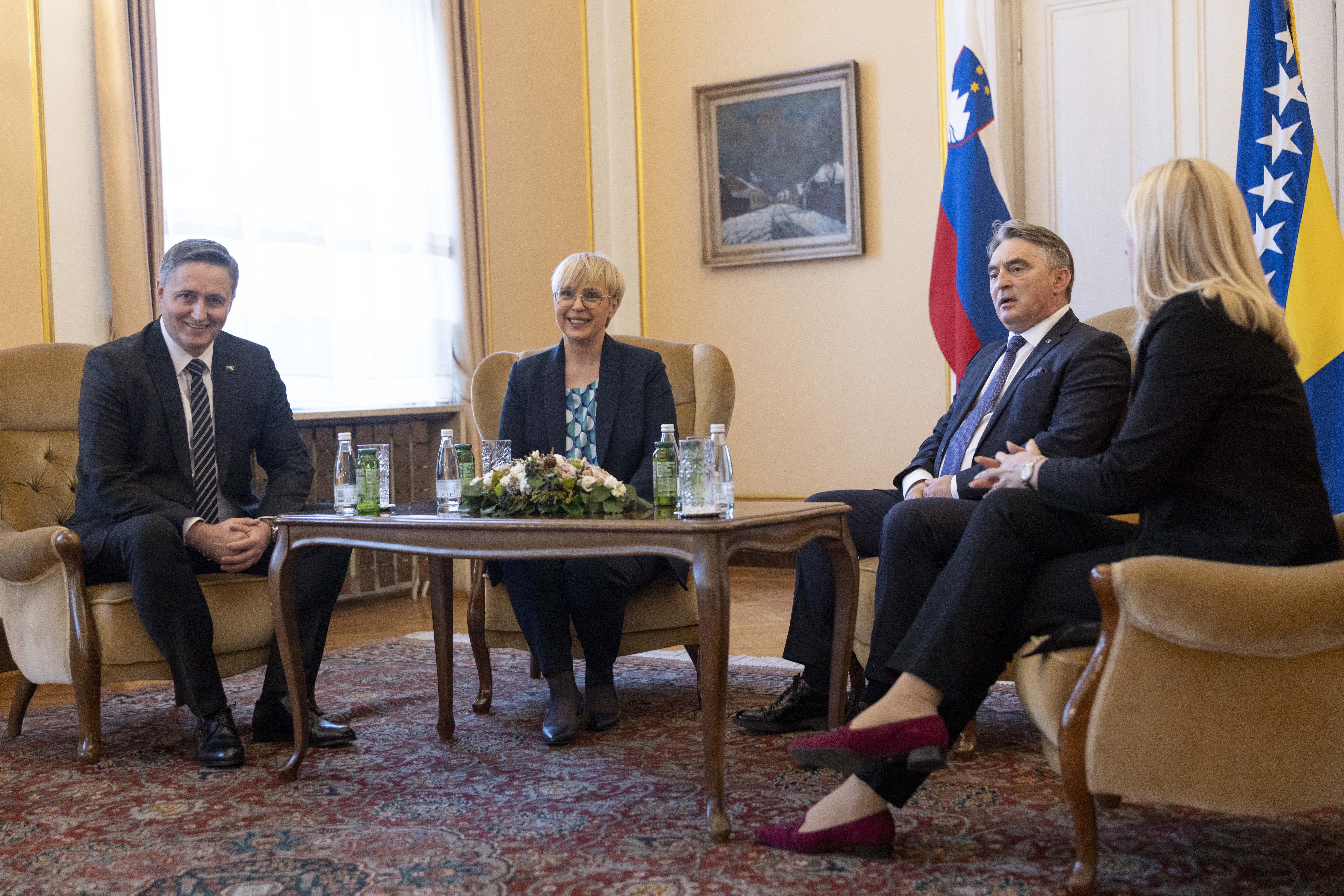 Na srečanju s člani Predsedstva BiH Željkom Komšićem, Denisom Bećirovićem in Željko Cvijanović je predsednica izpostavila pomembnost krepitev sodelovanja med državami regije Zahodnega Balkana ter Evropske unije, saj verjame, da je integracija v evropsko družino ključna za stabilnost in razvoj ne samo BiH pač pa celotne regije. Ob tem pa je ponovno poudarila, da Evropska unija pri procesu integracije ne sme 'držati fige v žepu', na državah regije pa je, da potrebne reforme v postavljenih rokih tudi izvedejo.