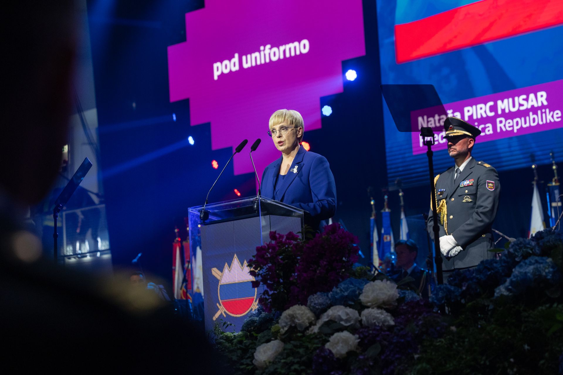 Predsednica Republike Slovenije in vrhovna poveljnica obrambnih sil je pred dnevom Slovenske vojske čestitala pripadnicam in pripadnikom Slovenske vojske, ki opravljajo državotvorno poslanstvo in so nenadomestljivi temelj naše državnosti. »Vrednote Slovenske vojske so vrednote skupnosti,« je dejala in izpostavila vlogo pripadnic in pripadnikov pri zagotavljanju miru, obrambi države in ljudi, nesebični pomoči sočloveku ter sodelovanju s partnerji in zavezniki. Pripadnice in pripadnike Slovenske vojske odlikujejo tovarištvo, pogum, požrtvovalnost, solidarnost, spoštovanje človekovih pravic in svoboščin ter varnost lastnega naroda – vrednote, ki jih vsak dan nosijo v »velikem srcu, ki pod uniformo bije za domovino in za vse nas.«