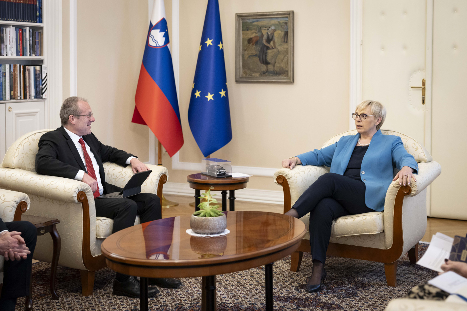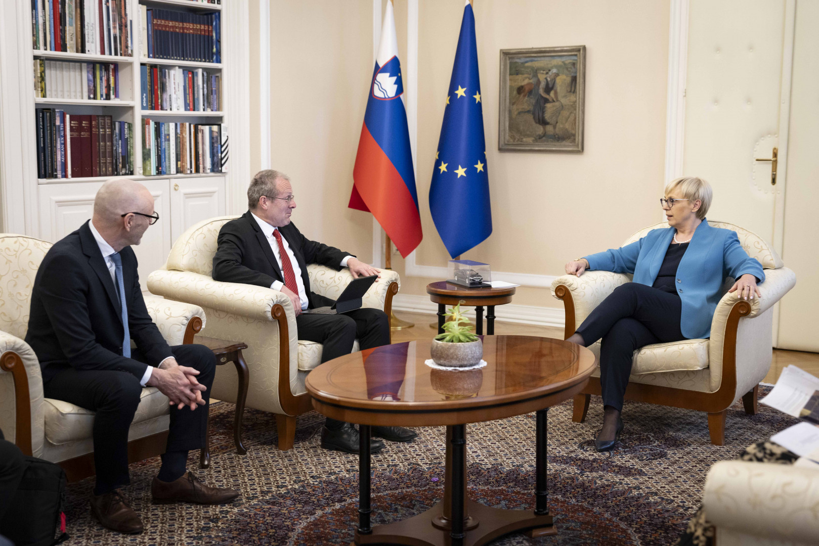 Predsednica republike Nataša Pirc Musar je danes sprejela regionalnega direktorja Svetovne zdravstvene organizacije (SZO) za Evropo, dr. Hansa Henrija P. Klugeja, ki se te dni udeležuje 11. zasedanja SZO malih držav na visoki ravni z naslovom Inovativne rešitve na področju zdravstva, ki poteka na Bledu.
