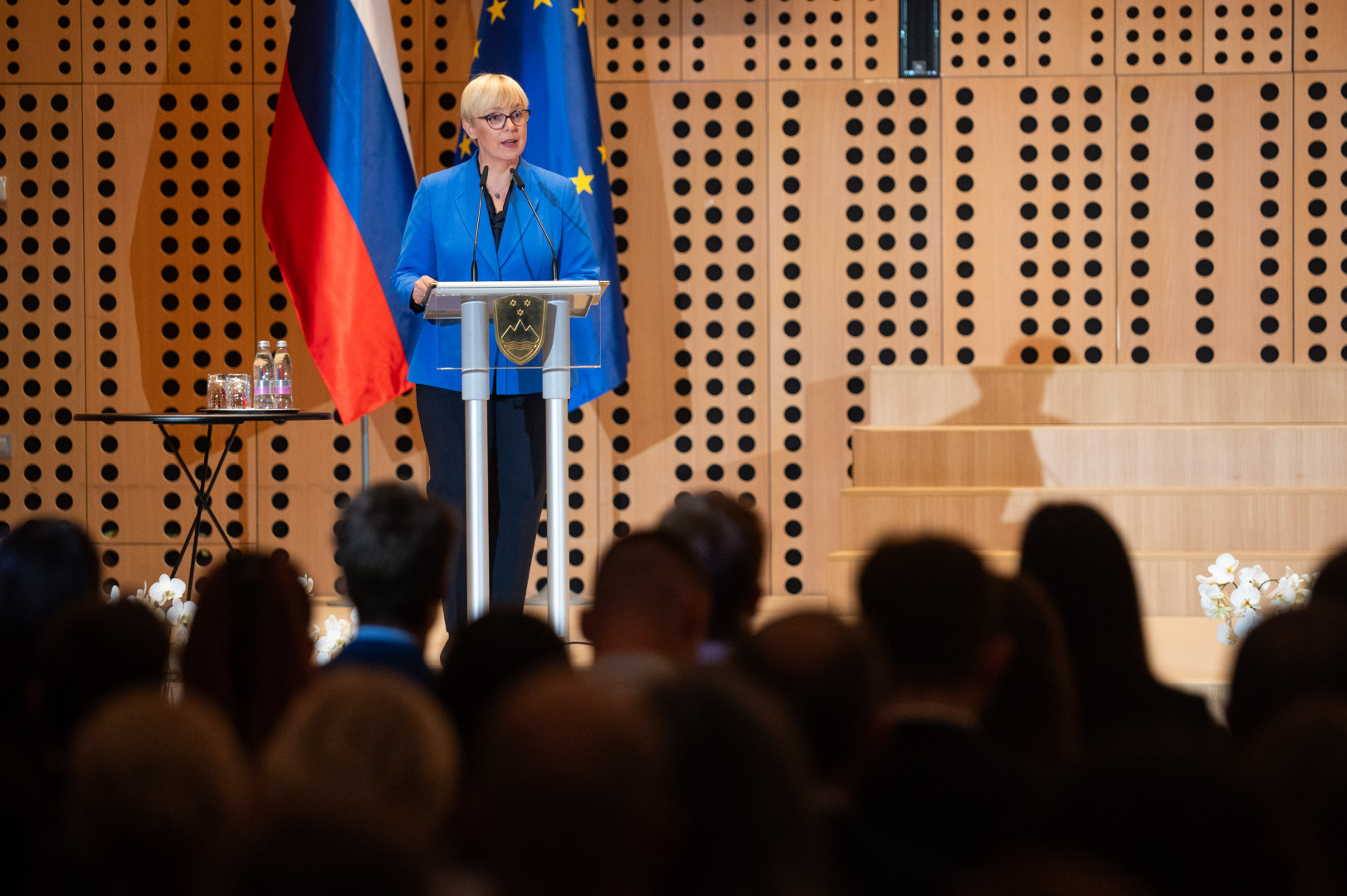 »Pred vami, dragi mladi, je svet, poln izzivov in nenehnih sprememb. Generacija, ki ji pripadate, se sooča s pojavi, ki jih prej nismo poznali v takšnih razsežnostih – podnebnimi krizami, pritiski zaradi življenjskih stroškov, digitalno preobrazbo, pa tudi razdiralnimi platformami družbenih omrežij, vprašanji etike novih tehnologij in potrebo po dialogu v času, obremenjenem z najštevilčnejšimi konflikti v zgodovini, ko se soočamo s hudodelstvi zoper človečnost. Svet danes bolj kot kadarkoli po drugi svetovni vojni potrebuje povezovanje, sodelovanje, solidarnost, enakopravnost spolov, boj proti lakoti in nasilju – ter seveda odločnost in pogum za vse to. Vsak dan se moramo zavzemati za človekovo dostojanstvo in spoštovanje človekovih pravic,« je še dodala predsednica in si zaželela, da bi dosežek diamantih maturantov opogumljal mlajše generacije, da bodo verjele v moč trdega dela in radovednosti.
