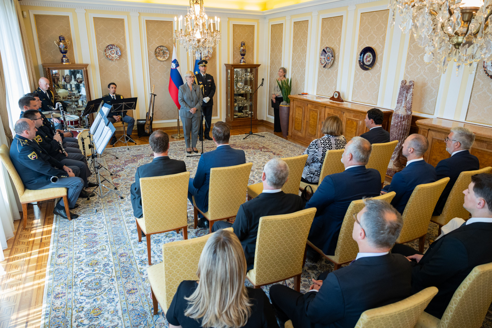 Predsednica republike se je diplomatom in diplomatkam, ki na novo prevzemajo veleposlaništva, zahvalila za udeležbo na sprejemu in izpostavila velik pomen poklica, ki ga opravljajo: »Tega se še bolj zavedam zdaj, ko kot predsednica obiskujem države, kjer vodite naša predstavništva. Tisto, čemur boste posvečali največ pozornosti, je odnos Slovenije z državo ali organizacijo, v katero odhajate.«