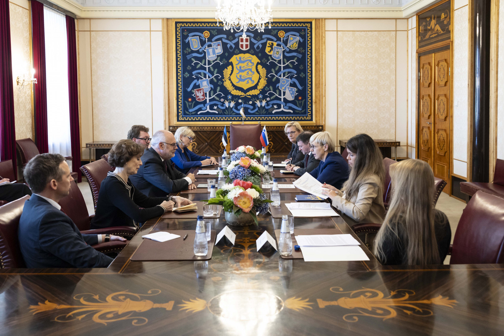 Srečanje s predsednikom Republike Estonije v predsedniški palači Kadriorg je bilo namenjeno krepitvi dvostranskih odnosov, političnega dialoga in sodelovanja med Slovenijo in Estonijo. Predsednica je v pogovoru izpostavila dobre in prijateljske odnose med državama in poudarila, da Estonijo vidi kot tesno partnerico v Evropski uniji in Natu, dobro pa sodelujemo tudi znotraj Organizacije združenih narodov. Sogovornika sta se strinjala, da lahko dobro sodelovanje na političnem področju vodi do še boljšega gospodarskega sodelovanja, ki se je med državama v lanskem letu sicer znatno okrepilo. Blagovna menjava med državama je v letu 2024 dosegla 141,4 milijona evrov in se je glede na leto 2023 povečala za 13,5 %. Storitvena menjava je v letu 2023 znašala 26 milijonov evrov in se je glede na leto 2022 povečala kar za 46 %. Na področju neposrednih naložb je v letu 2023 vrednost naložb iz Estonije znašala 114,5 milijonov evrov in se je glede na predhodno leto povečala za 40 %.