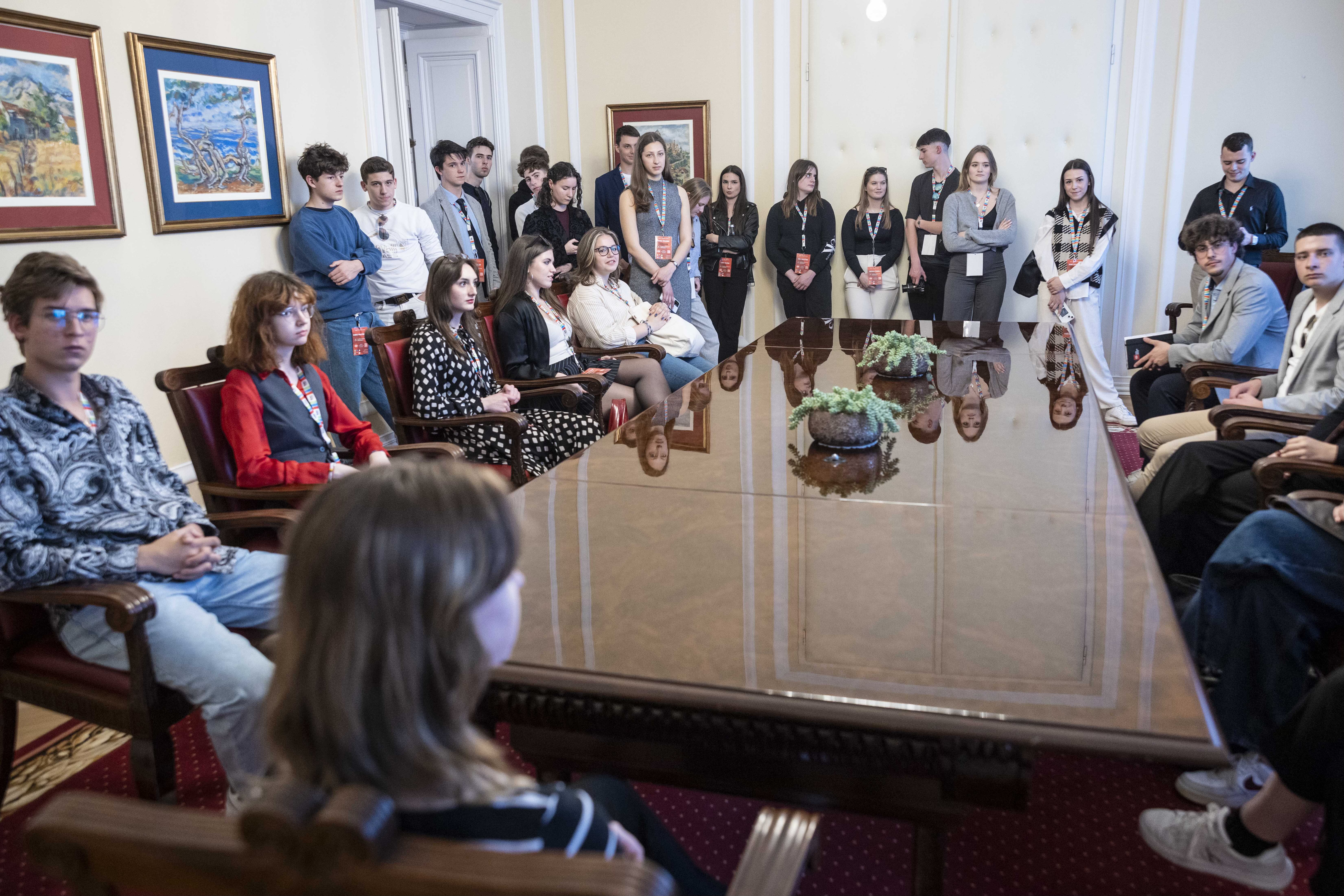 Dijakinje in dijaki različnih srednjih šol z vse Slovenije so Urad predsednice republike obiskali v okviru 15. dijaške nacionalne konference, ki je največji in najbolj obsežen projekt, ki ga Dijaška organizacija Slovenije izvaja že od leta 2008. Sprejeli sta jih šefinja kabineta Ula Tomaduz in svetovalka predsednice republike za človekovo varnost mag. Tatjana Bobnar ter jim v pogovoru predstavili delo Urada predsednice Republike Slovenije.