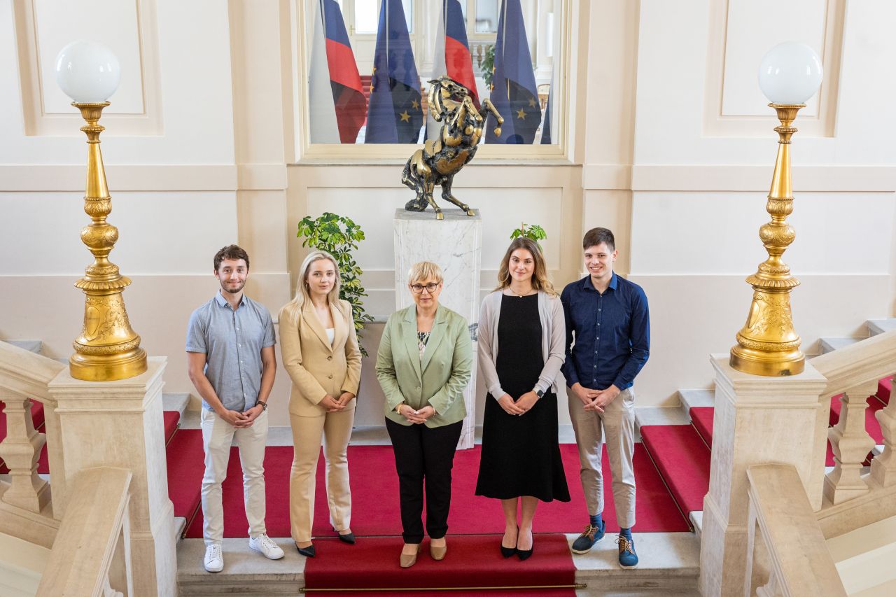 Članici in člana Mladinskega posvetovalnega odbora s predsednico Natašo Pirc Musar.
