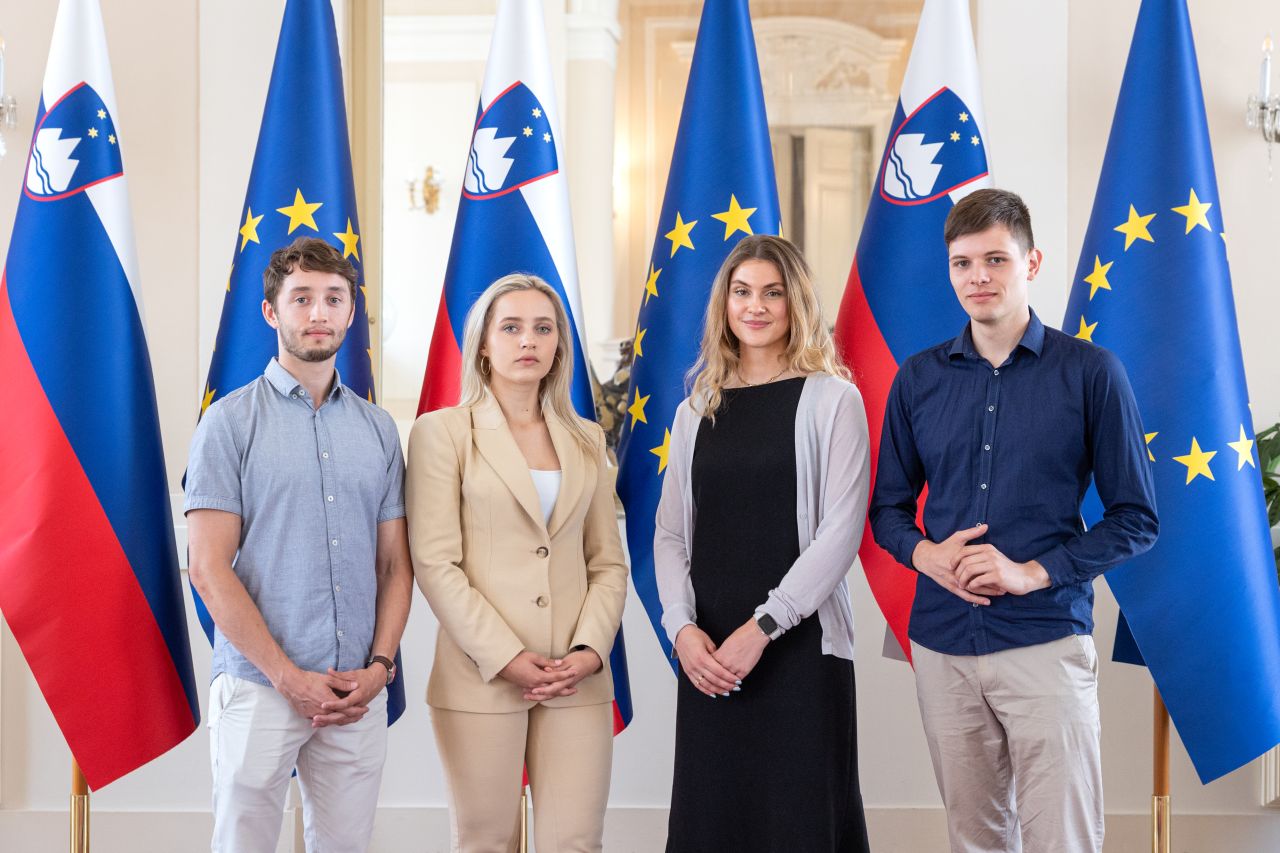 Stojijo od leve proti desni: Vid Čeplak Mencin, Sara Štiglic, Lucija Karnelutti in Luka Hiti.