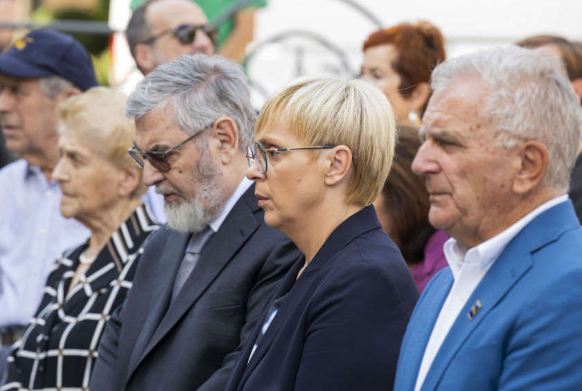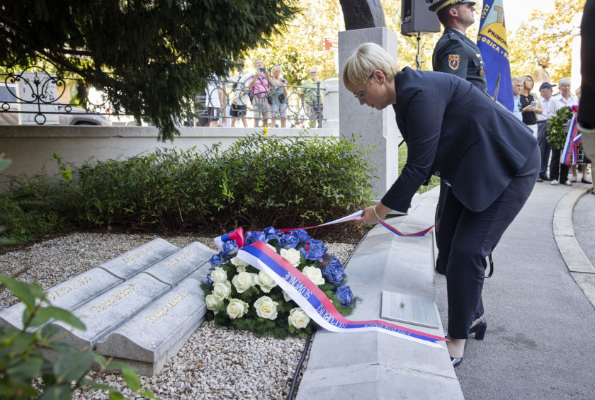 Predsednica Pirc Musar se je bazoviškim junakom poklonila ob prisotnosti Častne enote Republike Slovenije. K spominski plošči, kjer so v večnost vklesana njihova imena, je položila cvetje.