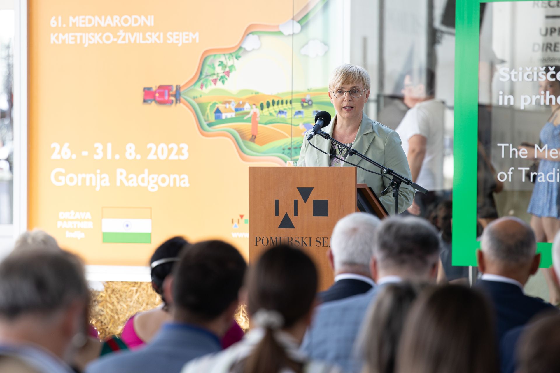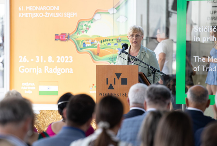 »V 21. stoletju imamo ljudje dovolj znanja in védenja, da z nekaj inovativnimi spremembami naših že preveč zakoreninjenih navad bolje zaščitimo okolje in sebe pred posledicami podnebnih sprememb in jih tudi upočasnimo, kolikor je v naši moči. In te moči je veliko. Vidim jo v vas, spoštovane kmetice in kmetje, verjamem v vaše sposobnosti in inovativnost,« je prisotne spodbudila predsednica republike in izrazila optimizem, da nas prava pot – četudi daljša in težja – edina vodi v prihodnost, kakršno si želimo.