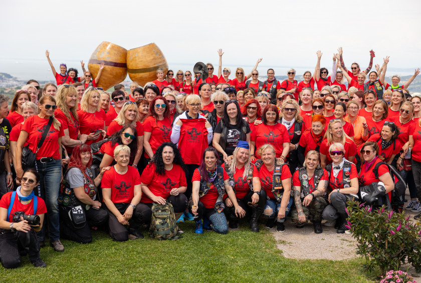 Predsednica v družbi motoristk iz vse Slovenije. Foto: Bor Slana / STA