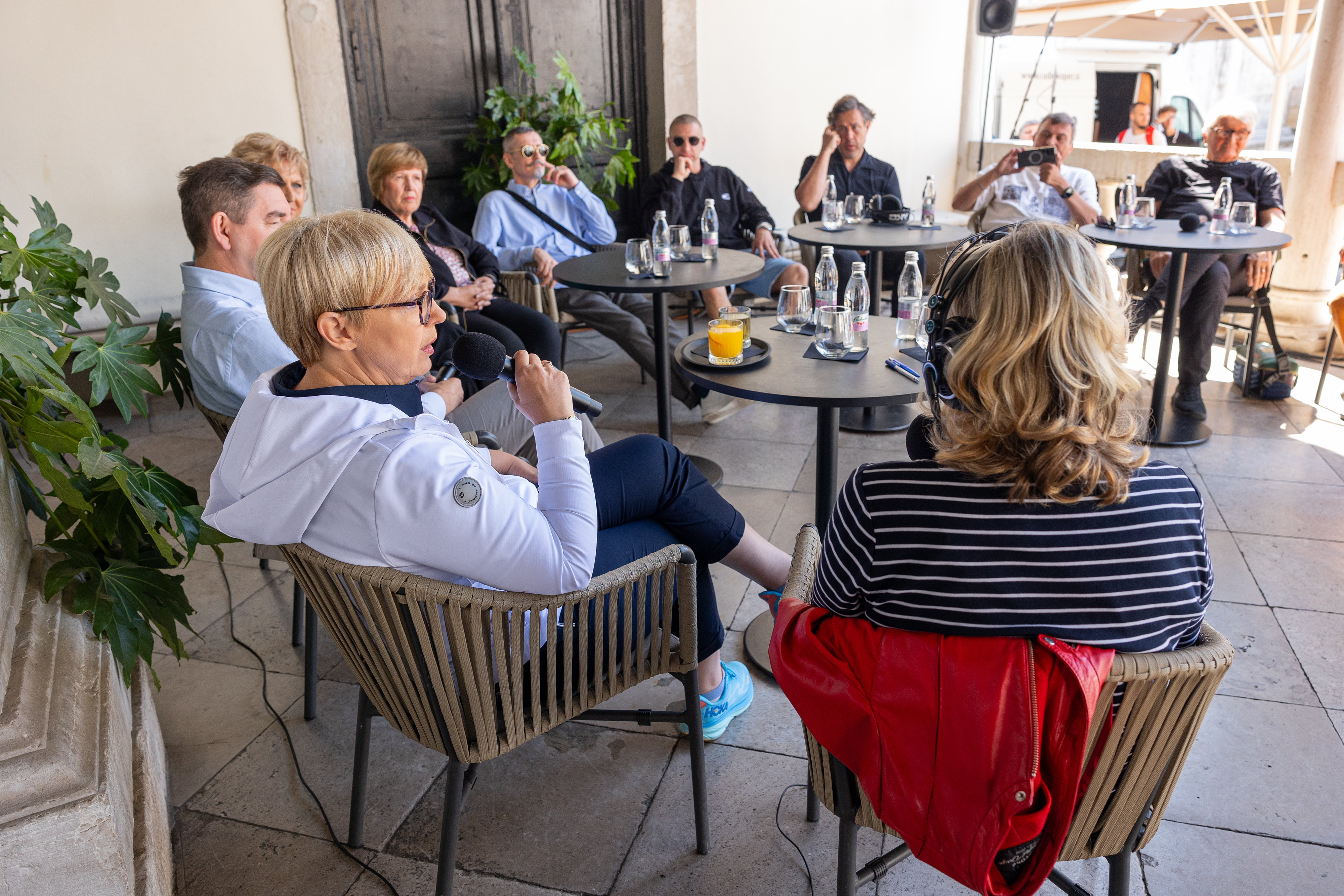 Poleg predsednice in soproga so se srečanja intervjuvancev oddaje, ki je bil tudi neposredno predvajan, udeležili še: dr. Nelida Nemec, umetnostna zgodovinarka, Jadranka Vrh Jermančič, zdravnica in prostovoljka, Gogo Vukšič in Drill, pisatelj in raper, Maja Gal Štromar in Daniel Malalan, pisateljica in igralec, Zorko Bajc in Ubald Trnkoczy, piranski župnik in direktor fotografije ter Drago Mislej Mef in Duško Milavec, glasbenik/novinar in filmski scenograf.