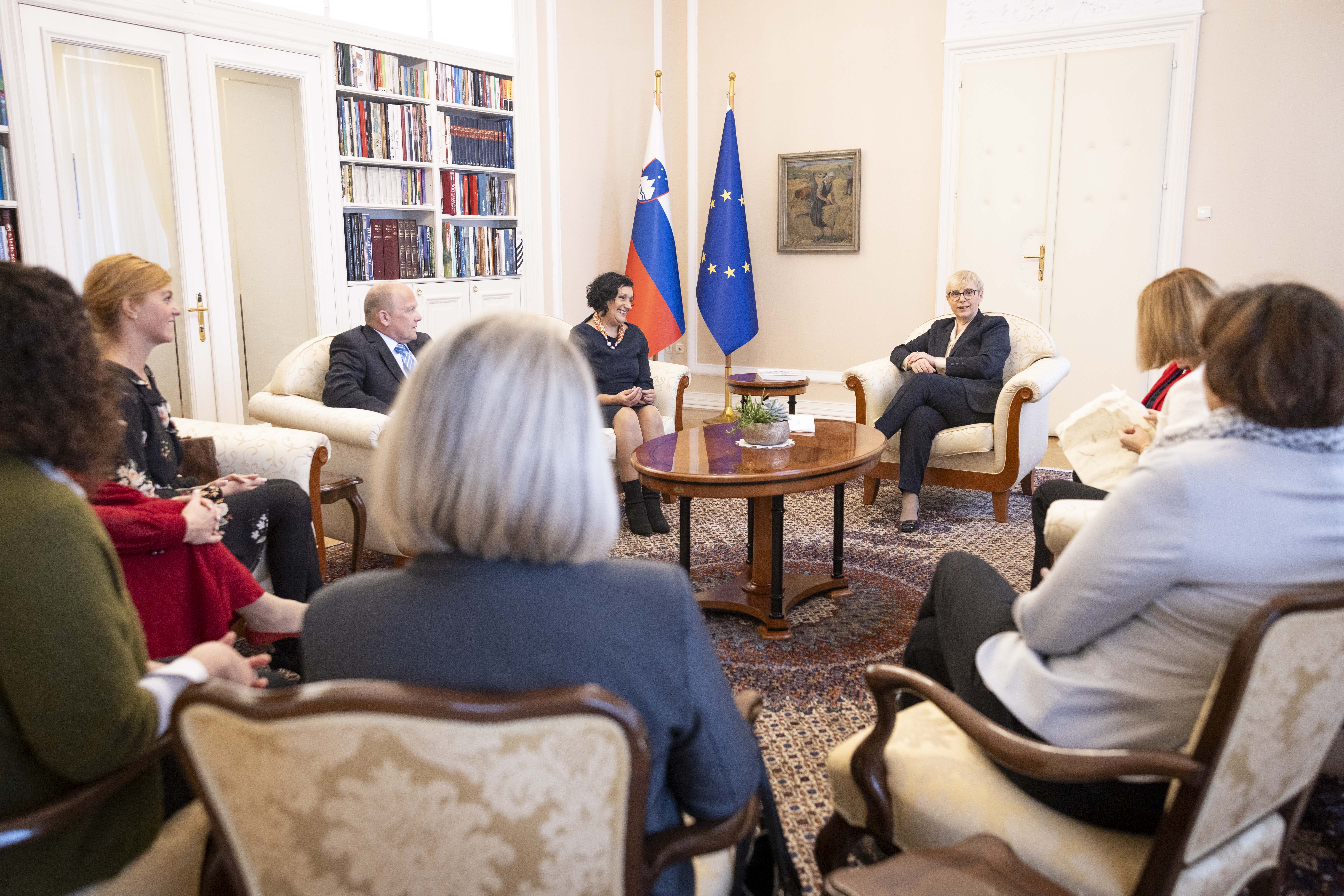 Predsednica Republike Slovenije Nataša Pirc Musar je danes sprejela predstavnice in predstavnika Nacionalne koordinacije predsednice Zbornice zdravstvene in babiške nege Slovenije - Zveze strokovnih društev medicinskih sester, babic in zdravstvenih tehnikov Slovenije.