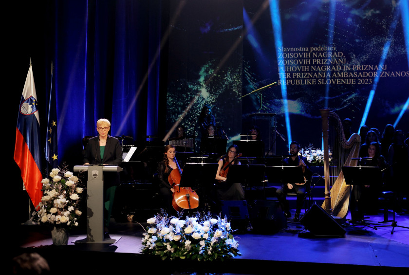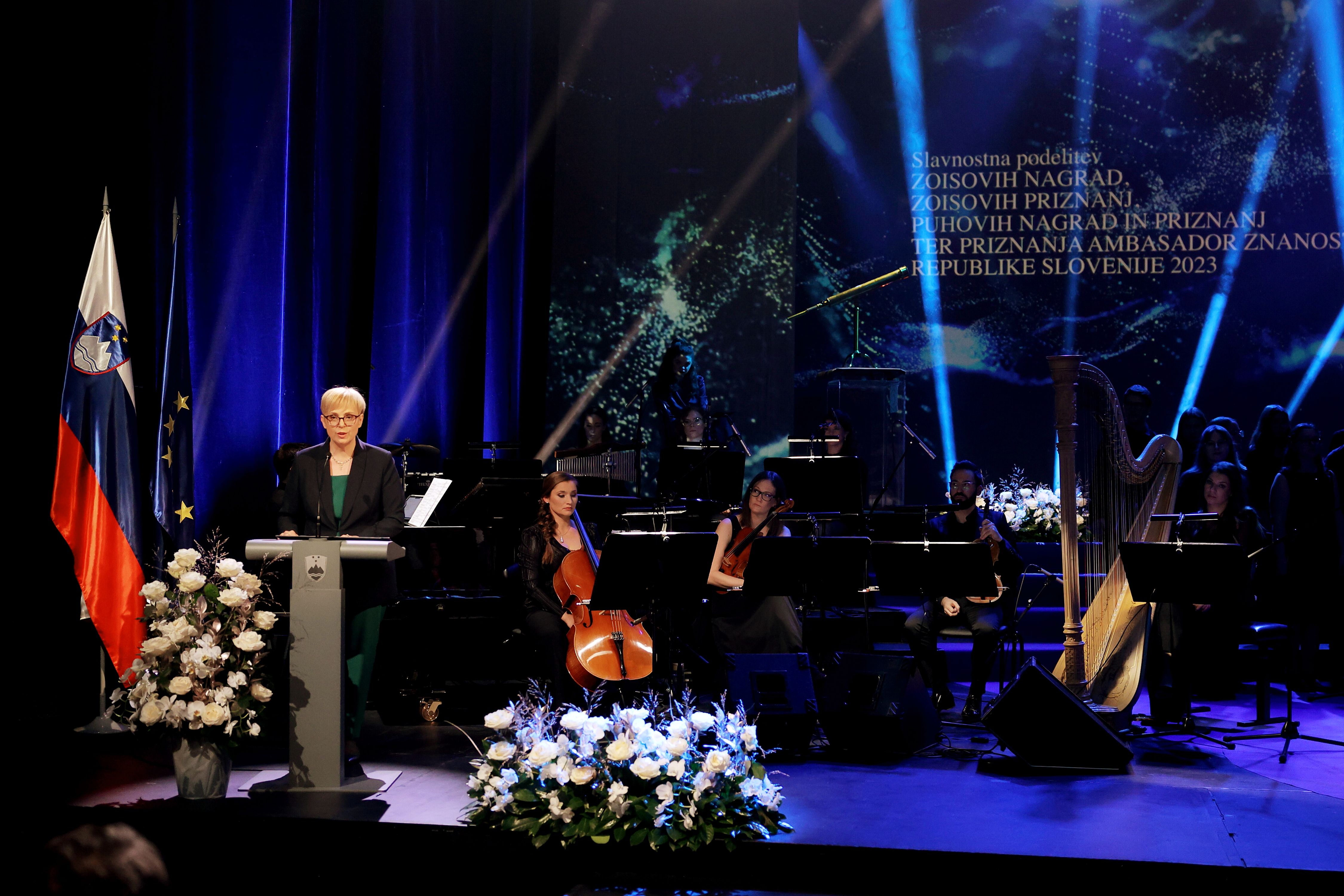 Predsednica Republike Slovenije Nataša Pirc Musar se je udeležila slavnostne podelitve nagrad in priznanj za izjemne dosežke v znanstveno-raziskovalni in razvojni dejavnosti v Sloveniji. Na slovesnosti so razglasili letošnje prejemnike Zoisovih in Puhovih nagrad, Zoisovih in Puhovih priznanj ter priznanja Ambasador znanosti Republike Slovenije.