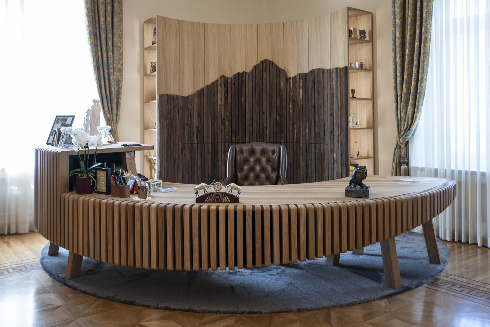 Osrednji prostor v predsedničini pisarni zavzema miza, izdelana iz slovenskega lesa, ki jo je predsednica prejela v začasno rabo. Slednja s svojo simboliko in oblikovanjem pripoveduje edinstveno zgodbo o Sloveniji – o njeni naravi, tradiciji, znanju in ustvarjalnosti. Slovenija, ki se ponaša z obsežnimi gozdovi ter bogato tradicijo obdelave lesa, ima pomembno vlogo v boju proti podnebnim spremembam. Prav na to izjemno naravno in kulturno danost opozarja nova predsedničina delovna miza – umetniško in obrtniško mojstrstvo, ki izraža trajnostno vizijo ter spoštovanje do narave in domače dediščine.